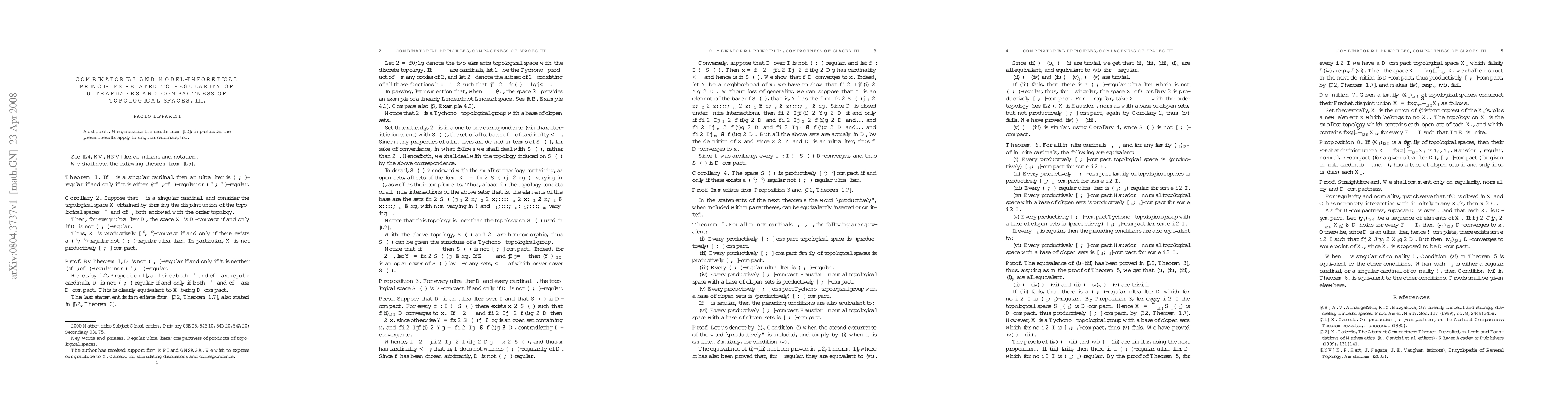 Summary: This paper generalizes previous findings on $[\lambda,\mu]$-compactness and regular ultrafilters, extending the results to include singular cardinals. It builds on earlier work by Lipparini, focusing on the interplay between combinatorial principles and model theory in topological spaces.