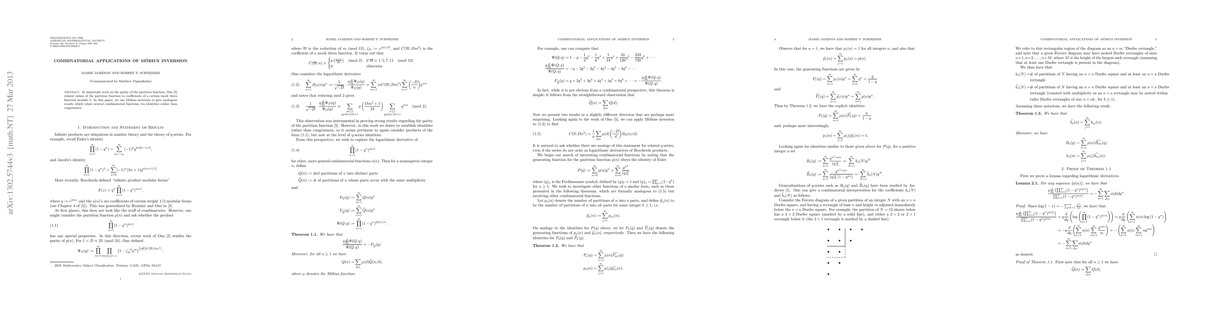 The paper introduces novel q-series identities using Möbius inversion, providing a fresh perspective on combinatorial function relationships.