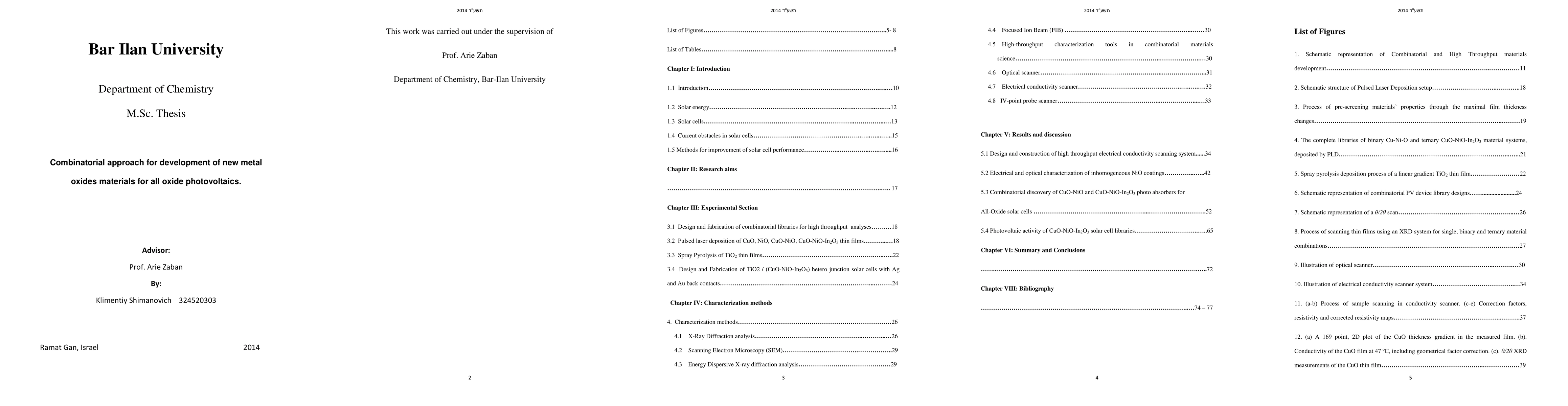The combinatorial approach to all oxide material and device research is based on the synthesis of hundreds of related materials in a single experiment. This approach requires the development of new tools to rapidly characterize these materials libraries and new techniques to analyze the resulting data. The research presented here is intended to make a contribution towards meeting this demand, and thereby advance the pace of materials research. In many cases photovoltaic determinations are well-suited for high throughput methodologies, enabling direct quantitative analysis of properties whose implementation I demonstrate my thesis. This thesis focuses on the development and utilization of high throughput and combinatorial methods that have incorporated, or are associated with, the all-oxide photovoltaic field. The development of new absorbers often requires novel buffer layers, contact materials, and interface engineering. The importance and contribution of the combinatorial material science approach for the development and rapid characterization of new and known metal oxide thin films for all oxide photovoltaics have been shown and discussed in my thesis.