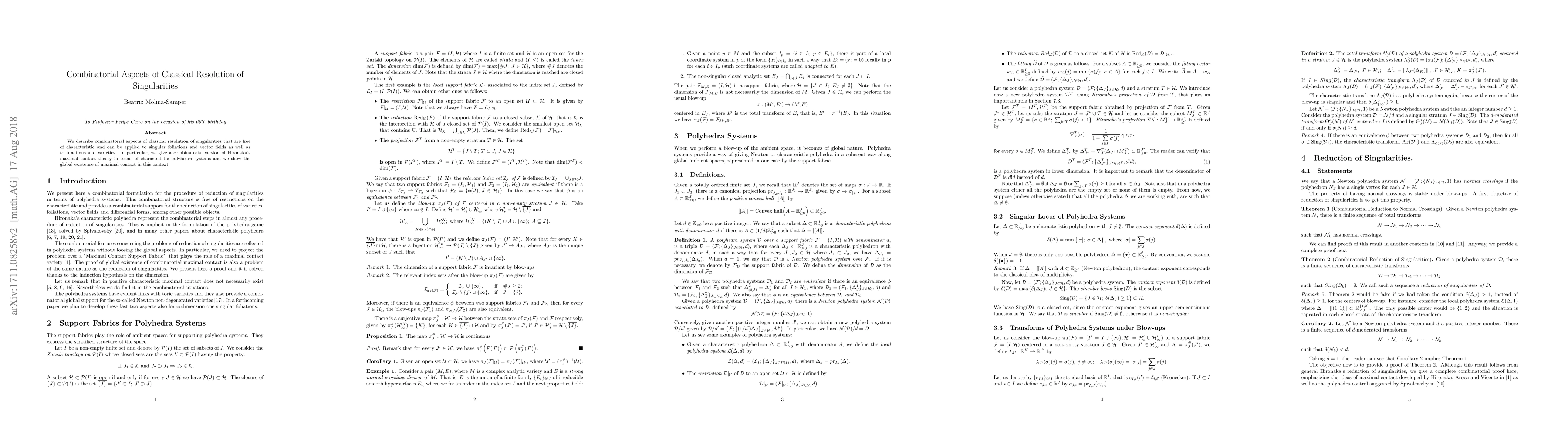 This paper explores combinatorial methods for classical resolution of singularities, applicable across various mathematical contexts, and presents a combinatorial version of Hironaka's maximal contact theory using characteristic polyhedra systems, proving the global existence of maximal contact.