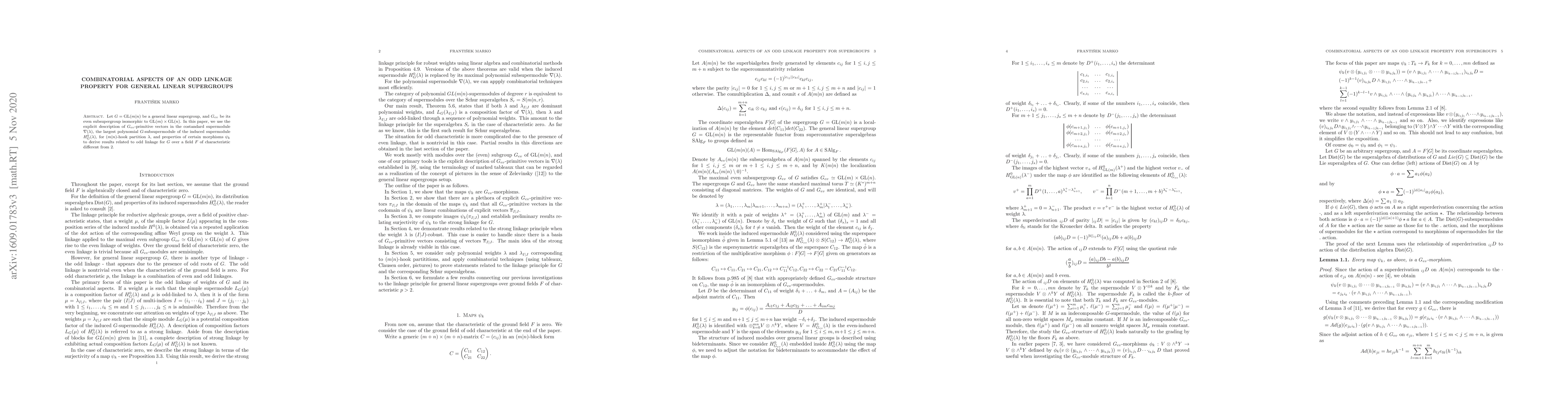 This paper explores the combinatorial aspects of the linkage principle for the general linear supergroup $G=GL(m|n)$, focusing on the even subsupergroup $G_{ev}$ and its primitive vectors in costandard supermodules. It derives results concerning the odd linkage for $G$ over fields of characteristic not equal to $2$.