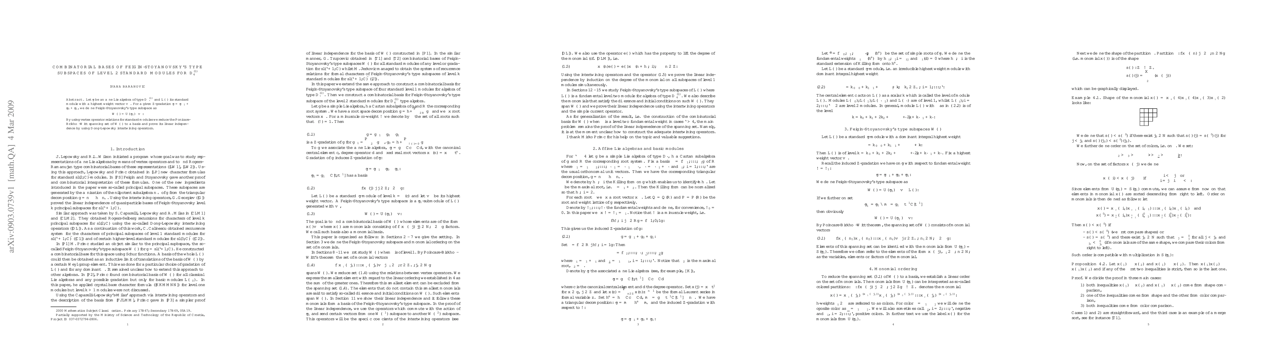 Let $\gtl$ be an affine Lie algebra of type $D_{\ell}^{(1)}$ and $L(\Lambda)$ its standard module with a highest weight vector $v_{\Lambda}$. For a given $\Z$-gradation $\gtl = \gtl_{-1} + \gtl_0 + \gtl_1$, we define Feigin-Stoyanovsky's type subspace as $$W(\Lambda) = U(\gtl_1) \cdot v_{\Lambda}.$$ By using vertex operator relations for standard modules we reduce the Ponicar\'{e}-Brikhoff-Witt spanning set of $W(\Lambda)$ to a basis and prove its linear independence by using Dong-Lepowsky intertwining operators.