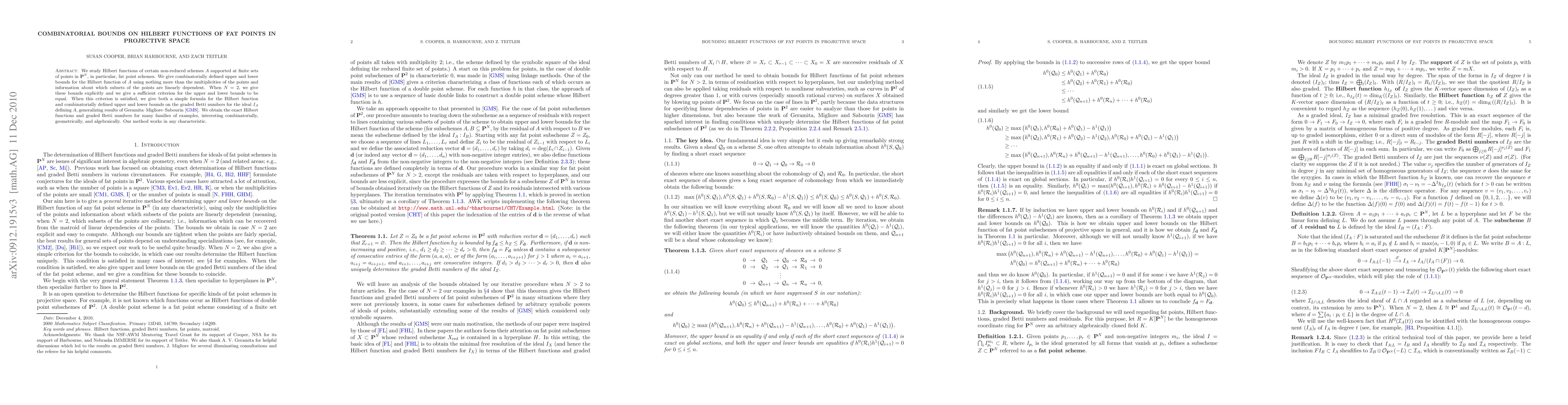 We study Hilbert functions of certain non-reduced schemes A supported at finite sets of points in projective space, in particular, fat point schemes. We give combinatorially defined upper and lower bounds for the Hilbert function of A using nothing more than the multiplicities of the points and information about which subsets of the points are linearly dependent. When N=2, we give these bounds explicitly and we give a sufficient criterion for the upper and lower bounds to be equal. When this criterion is satisfied, we give both a simple formula for the Hilbert function and combinatorially defined upper and lower bounds on the graded Betti numbers for the ideal defining A, generalizing results of Geramita-Migliore-Sabourin (2006). We obtain the exact Hilbert functions and graded Betti numbers for many families of examples, interesting combinatorially, geometrically, and algebraically. Our method works in any characteristic. AWK scripts implementing our results can be obtained at http://www.math.unl.edu/~bharbourne1/CHT/Example.html .