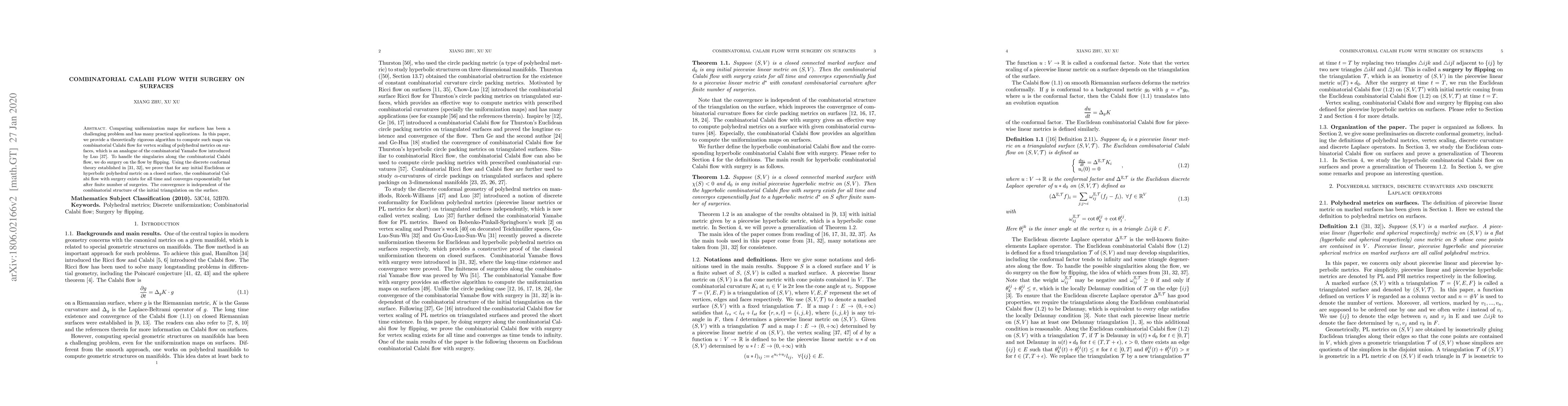 This paper presents a rigorous algorithm for computing uniformization maps on surfaces using combinatorial Calabi flow and polyhedral metrics, addressing singularities via surgery. The method converges exponentially fast after a finite number of surgeries, independent of the initial triangulation.