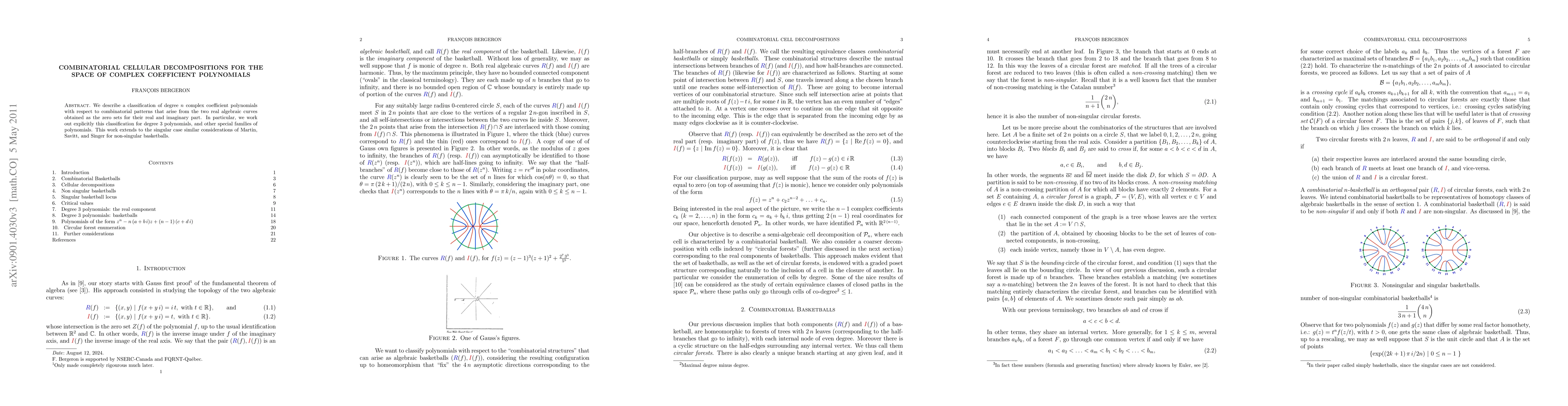 Researchers classify complex coefficient polynomials based on combinatorial patterns from their real and imaginary parts, extending to singular cases.