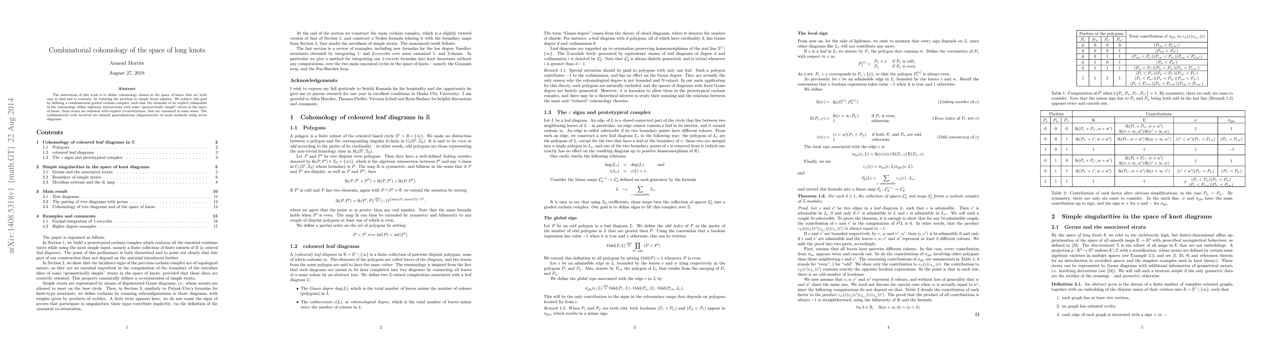 The motivation of this work is to define cohomology classes in the space of knots that are both easy to find and to evaluate, by reducing the problem to simple linear algebra. We achieve this goal by defining a combinatorial graded cochain complex, such that the elements of an explicit submodule in the cohomology define algebraic intersections with some "geometrically simple" strata in the space of knots. Such strata are endowed with explicit co-orientations, that are canonical in some sense. The combinatorial tools involved are natural generalisations (degeneracies) of usual methods using arrow diagrams.