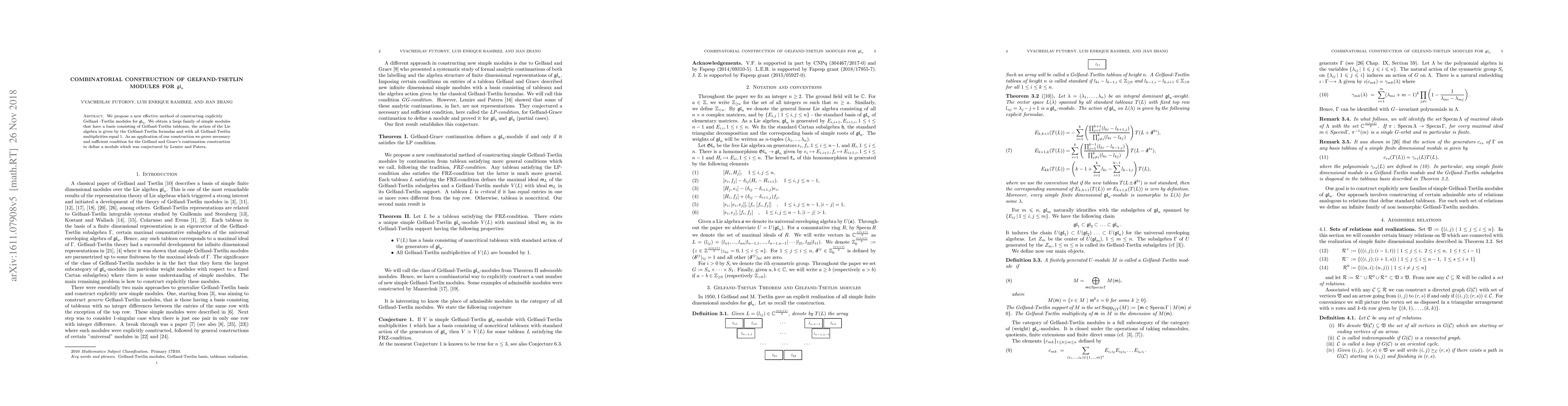 The paper introduces a new method for explicitly constructing Gelfand-Tsetlin modules for $\mathfrak{gl}_n$, obtaining a broad family of simple modules based on Gelfand-Tsetlin tableaux with unit multiplicities. It also proves the necessary and sufficient condition for the Gelfand and Graev continuation construction to define a conjectured module.