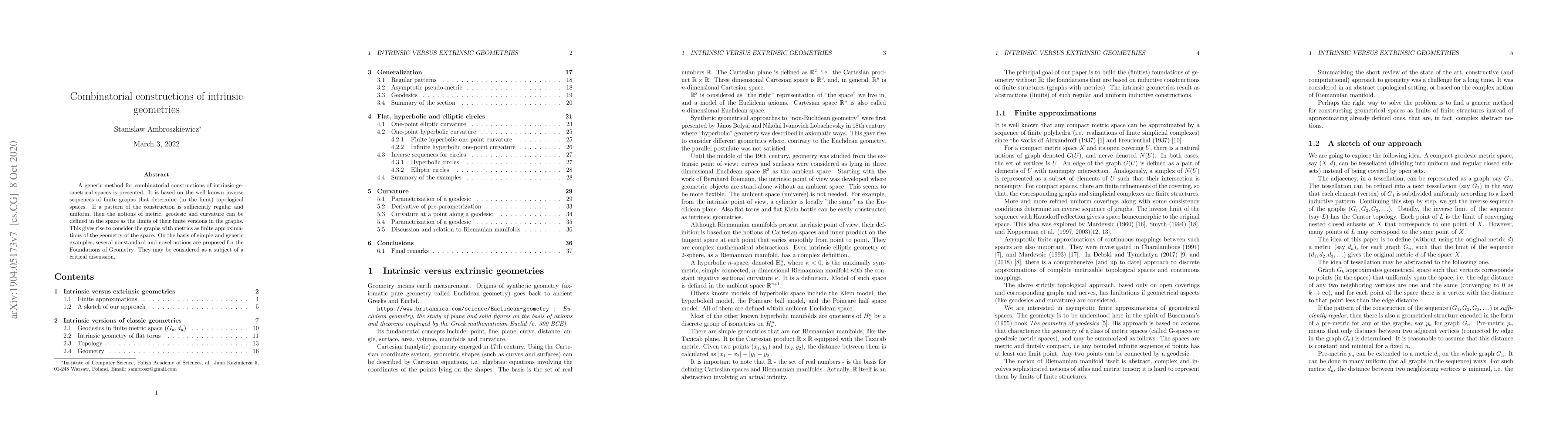 This paper introduces a method for constructing intrinsic geometrical spaces using combinatorial techniques based on inverse sequences of finite graphs. It proposes novel notions for foundational geometry, suggesting finite graph metrics as approximations of the geometry of the resulting spaces.