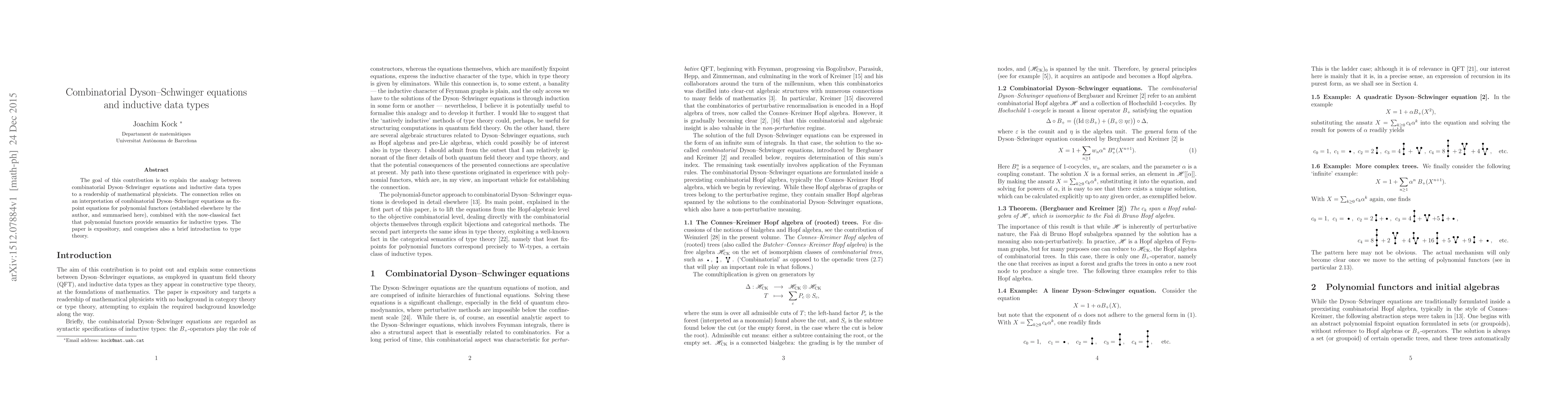 This paper elucidates the connection between combinatorial Dyson-Schwinger equations and inductive data types, interpreting the former as fixpoint equations for polynomial functors, and linking the latter with semantics for inductive types. It serves as an expository guide for mathematical physicists.