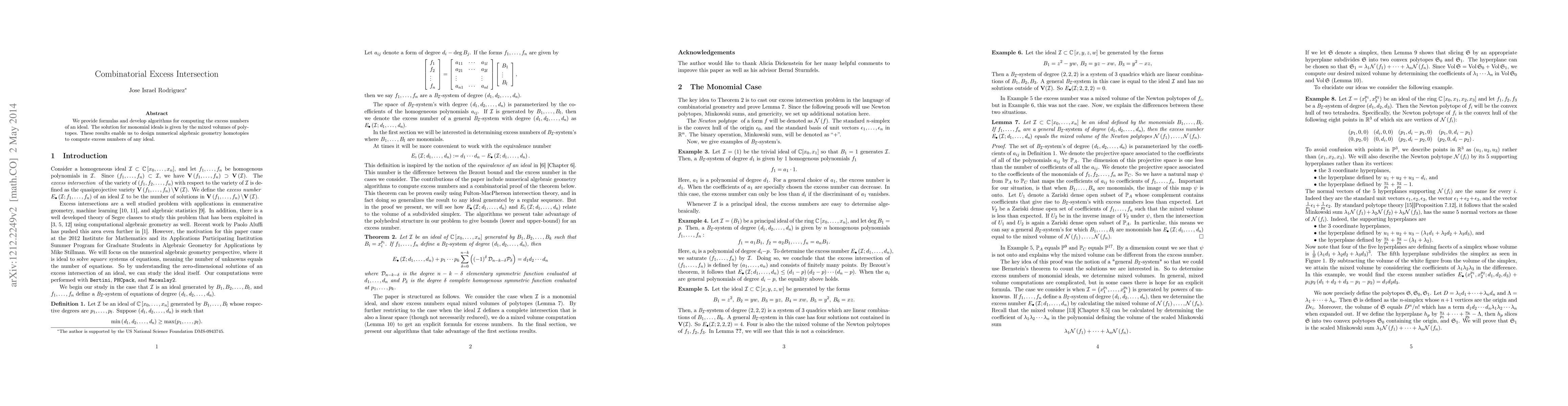 Researchers developed formulas and algorithms to calculate excess numbers for certain ideals in algebraic geometry, using polytopes to solve the problem, with implications for designing numerical homotopies.