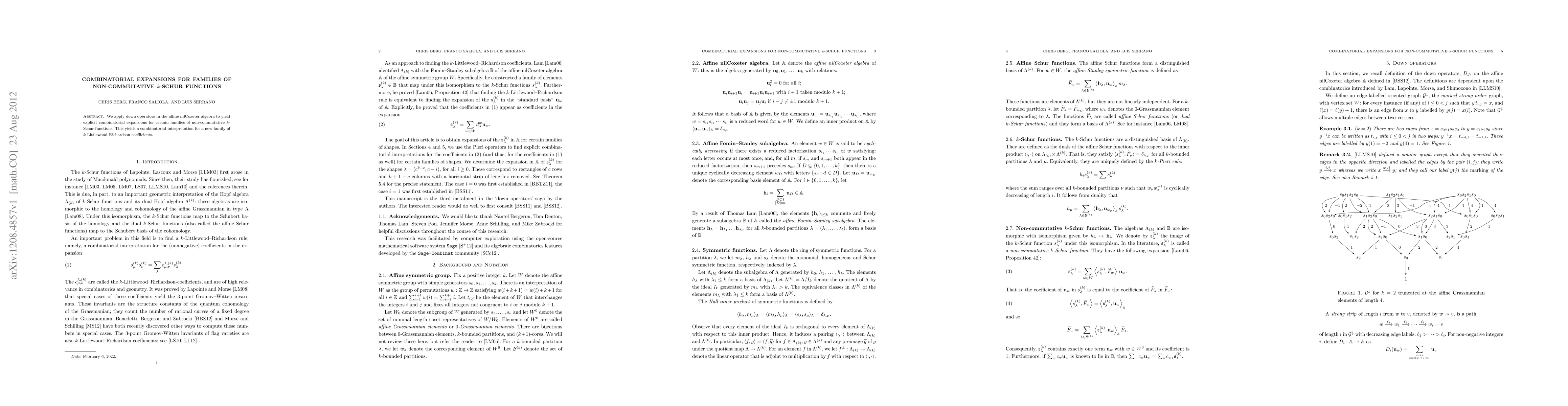 We apply down operators in the affine nilCoxeter algebra to yield explicit combinatorial expansions for certain families of non-commutative k-Schur functions. This yields a combinatorial interpretation for a new family of k-Littlewood-Richardson coefficients.