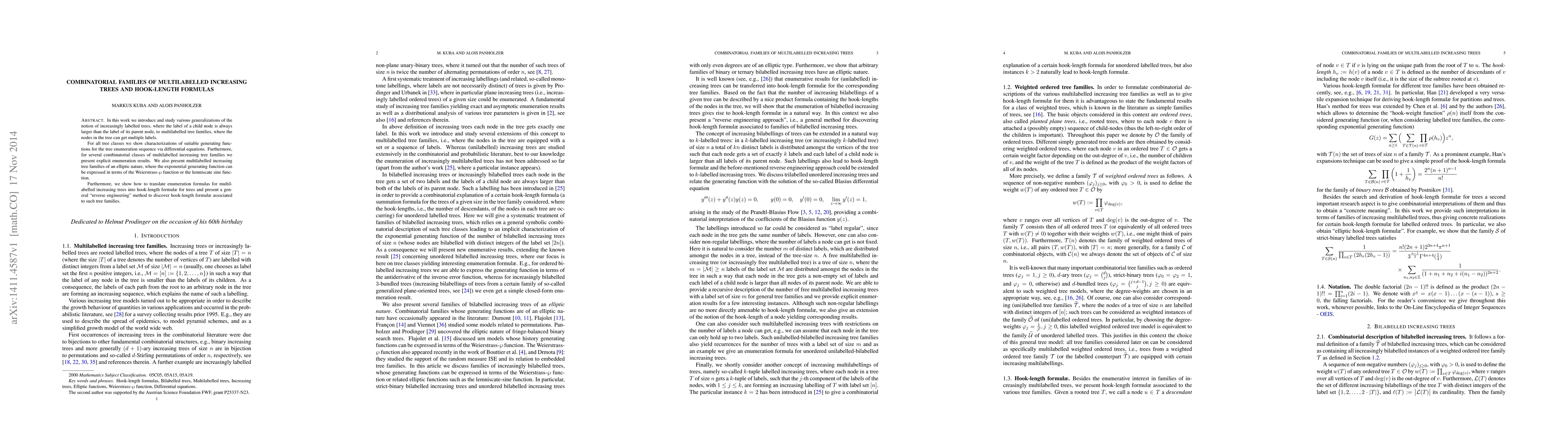 This research paper introduces multilabelled increasing tree families with various combinatorial classes, deriving enumeration formulas via differential equations and hook-length formulas through a reverse engineering method.