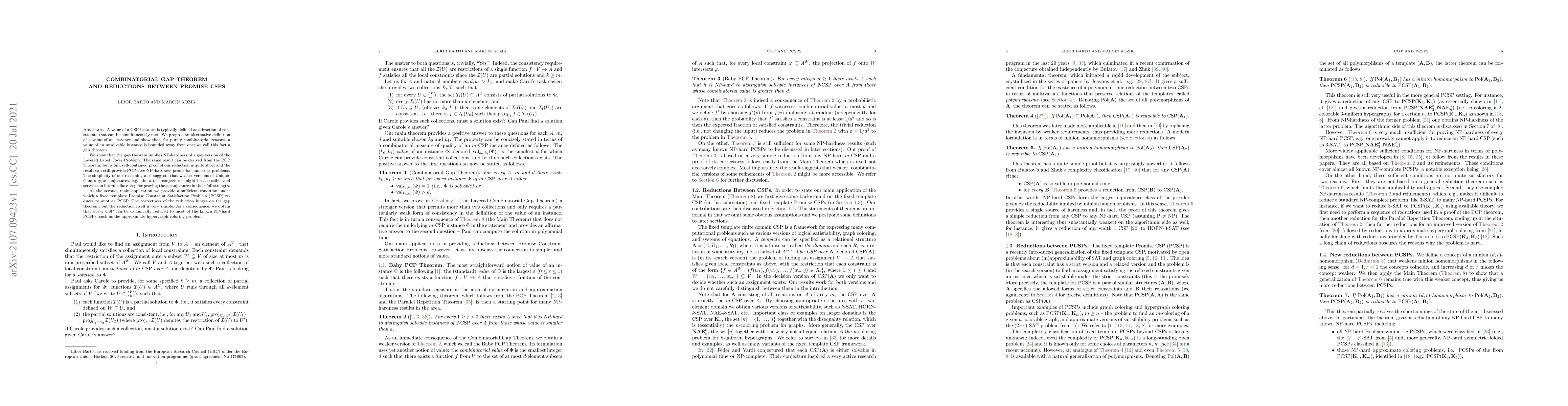 A value of a CSP instance is typically defined as a fraction of constraints that can be simultaneously met. We propose an alternative definition of a value of an instance and show that, for purely combinatorial reasons, a value of an unsolvable instance is bounded away from one; we call this fact a gap theorem. We show that the gap theorem implies NP-hardness of a gap version of the Layered Label Cover Problem. The same result can be derived from the PCP Theorem, but a full, self-contained proof of our reduction is quite short and the result can still provide PCP-free NP-hardness proofs for numerous problems. The simplicity of our reasoning also suggests that weaker versions of Unique-Games-type conjectures, e.g., the d-to-1 conjecture, might be accessible and serve as an intermediate step for proving these conjectures in their full strength. As the second, main application we provide a sufficient condition under which a fixed template Promise Constraint Satisfaction Problem (PCSP) reduces to another PCSP. The correctness of the reduction hinges on the gap theorem, but the reduction itself is very simple. As a consequence, we obtain that every CSP can be canonically reduced to most of the known NP-hard PCSPs, such as the approximate hypergraph coloring problem.