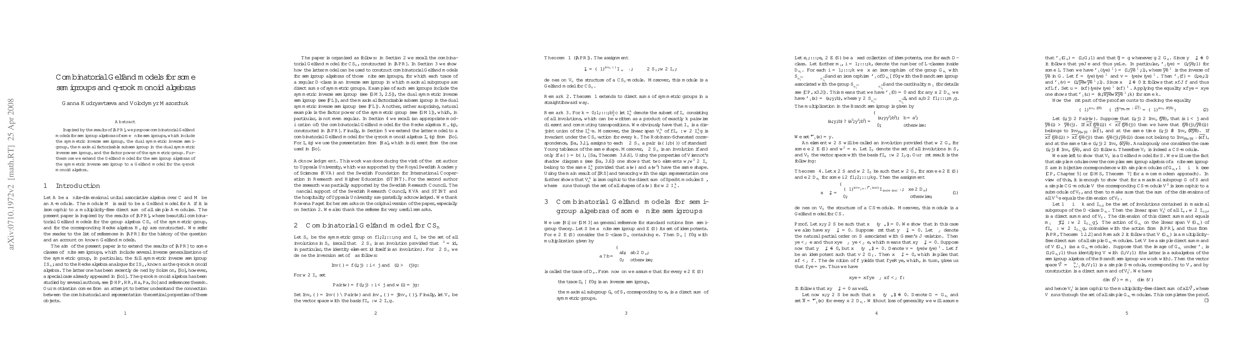 This paper proposes combinatorial Gelfand models for semigroup algebras of various finite semigroups, including the symmetric inverse semigroup and its dual, and extends the model to the $q$-rook monoid algebra, inspired by prior work on combinatorial Gelfand models.