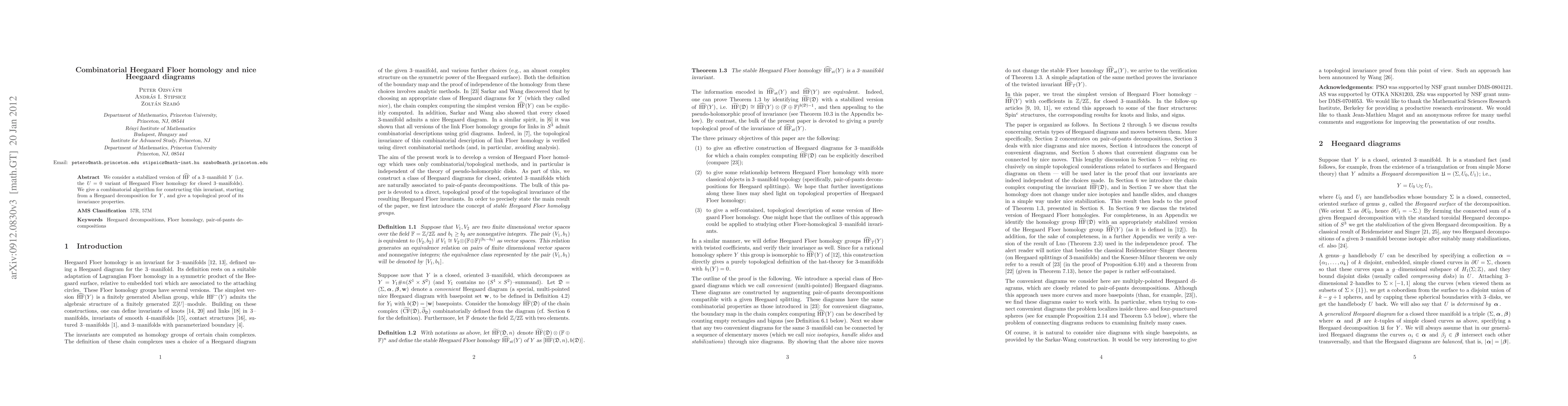 The paper presents a stabilized version of hat Heegaard Floer homology for closed 3-manifolds, providing a combinatorial algorithm for its construction from Heegaard decompositions and proving its invariance properties combinatorially.