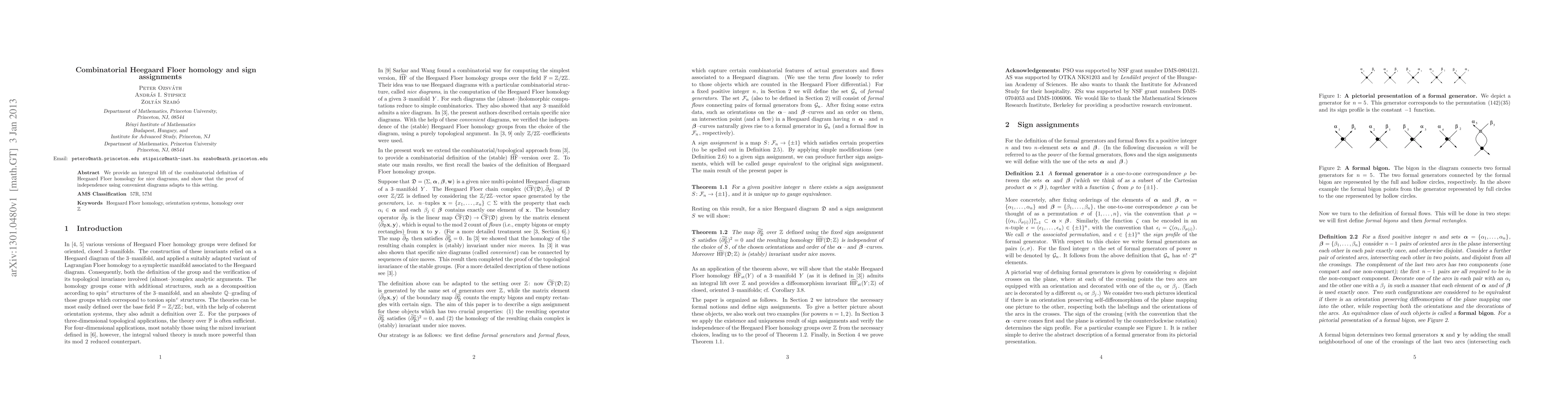 We provide an intergral lift of the combinatorial definition of Heegaard Floer homology for nice diagrams, and show that the proof of independence using convenient diagrams adapts to this setting.
