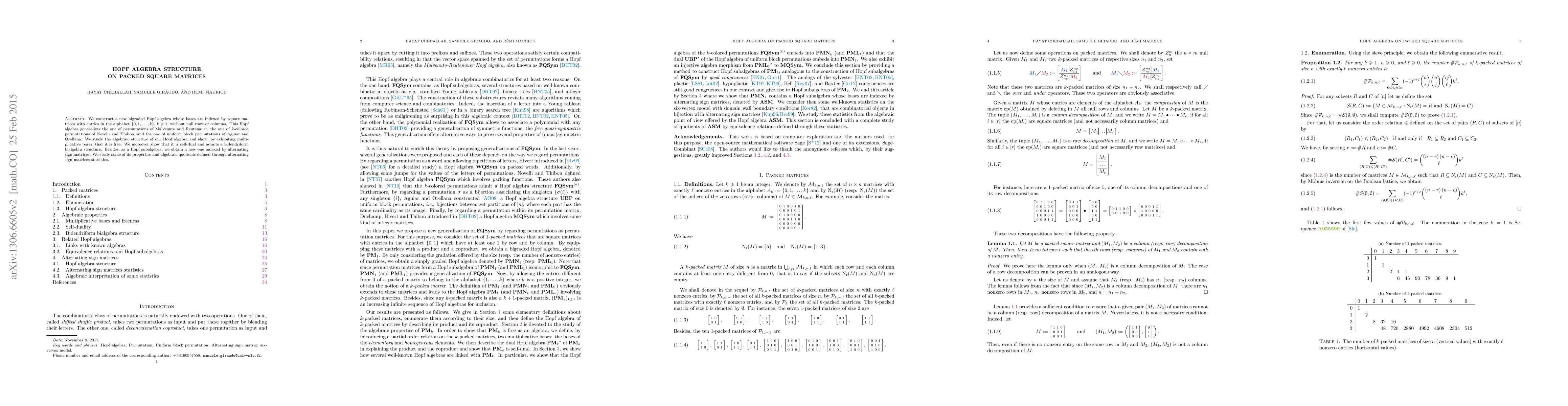 This paper constructs a new bigraded Hopf algebra based on packed square matrices, generalizing previous structures for permutations and block permutations. The authors demonstrate its algebraic properties, including self-duality and a bidendriform bialgebra structure, and identify a Hopf subalgebra indexed by alternating sign matrices.