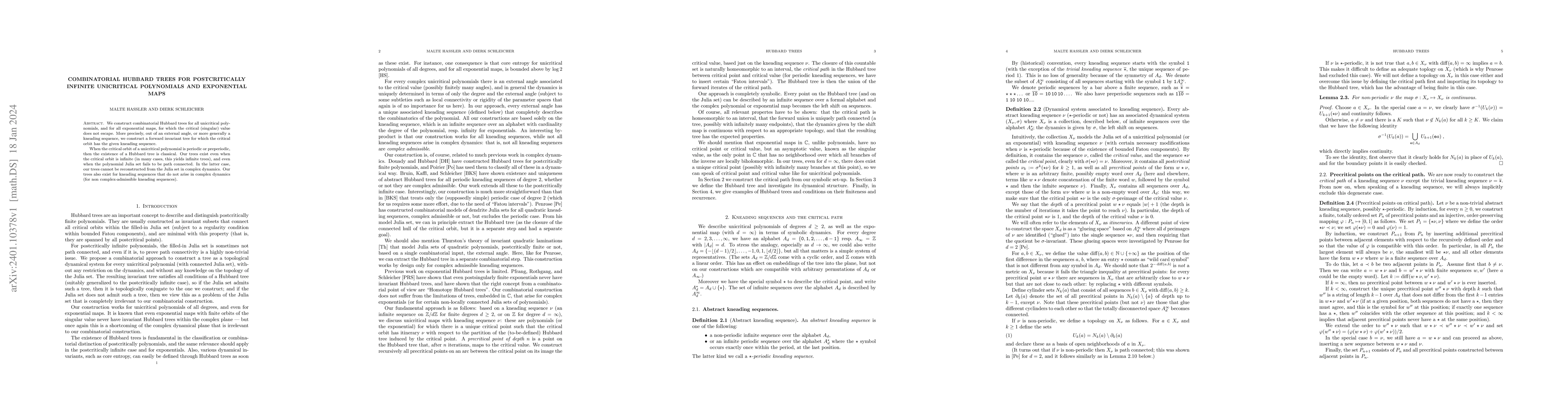The research constructs combinatorial Hubbard trees for all unicritical polynomials and exponential maps, using external angles or kneading sequences to create forward invariant trees where the critical orbit has the given kneading sequence. This construction exists even for infinite critical orbits and when the Julia set is not path connected.