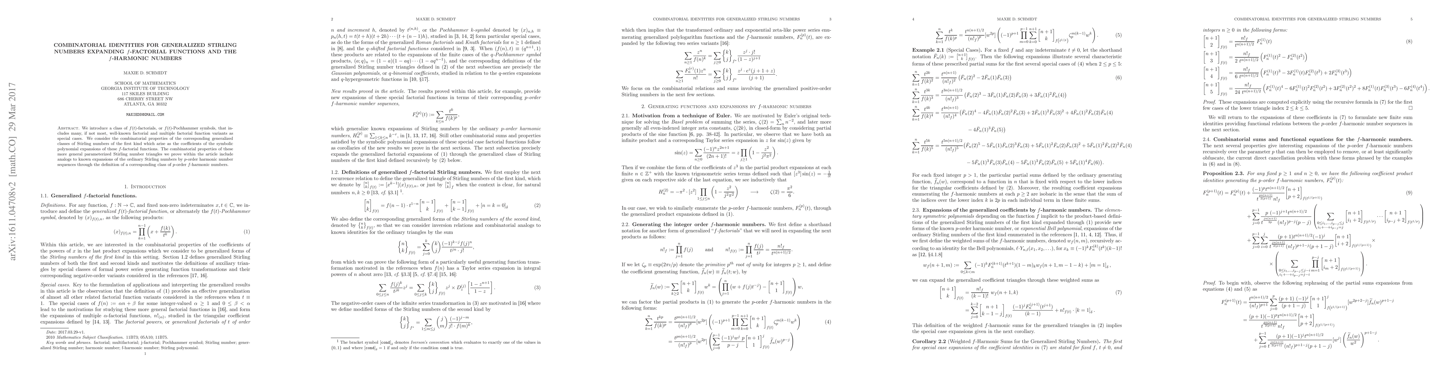 We introduce a class of $f(t)$-factorials, or $f(t)$-Pochhammer symbols, that includes many, if not most, well-known factorial and multiple factorial function variants as special cases. We consider the combinatorial properties of the corresponding generalized classes of Stirling numbers of the first kind which arise as the coefficients of the symbolic polynomial expansions of these $f$-factorial functions. The combinatorial properties of these more general parameterized Stirling number triangles we prove within the article include analogs to known expansions of the ordinary Stirling numbers by $p$-order harmonic number sequences through the definition of a corresponding class of $p$-order $f$-harmonic numbers.