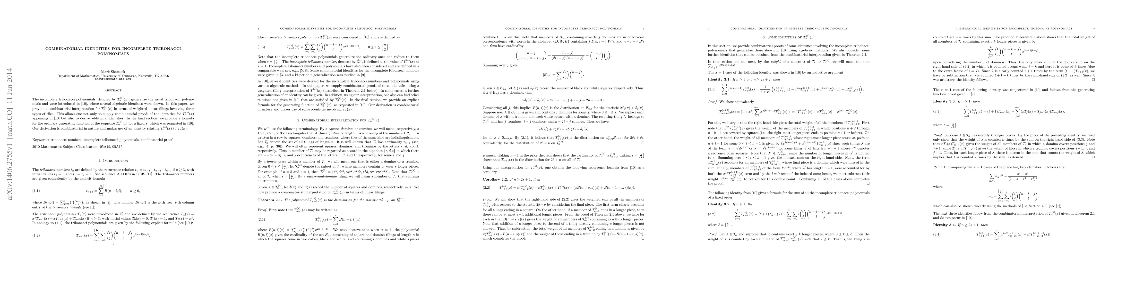 The incomplete tribonacci polynomials, denoted by T_n^{(s)}(x), generalize the usual tribonacci polynomials T_n(x) and were introduced in [10], where several algebraic identities were shown. In this paper, we provide a combinatorial interpretation for T_n^{(s)}(x) in terms of weighted linear tilings involving three types of tiles. This allows one not only to supply combinatorial proofs of the identities for T_n^{(s)}(x) appearing in [10] but also to derive additional identities. In the final section, we provide a formula for the ordinary generating function of the sequence T_n^{(s)}(x) for a fixed s, which was requested in [10]. Our derivation is combinatorial in nature and makes use of an identity relating T_n^{(s)}(x) to T_n(x).