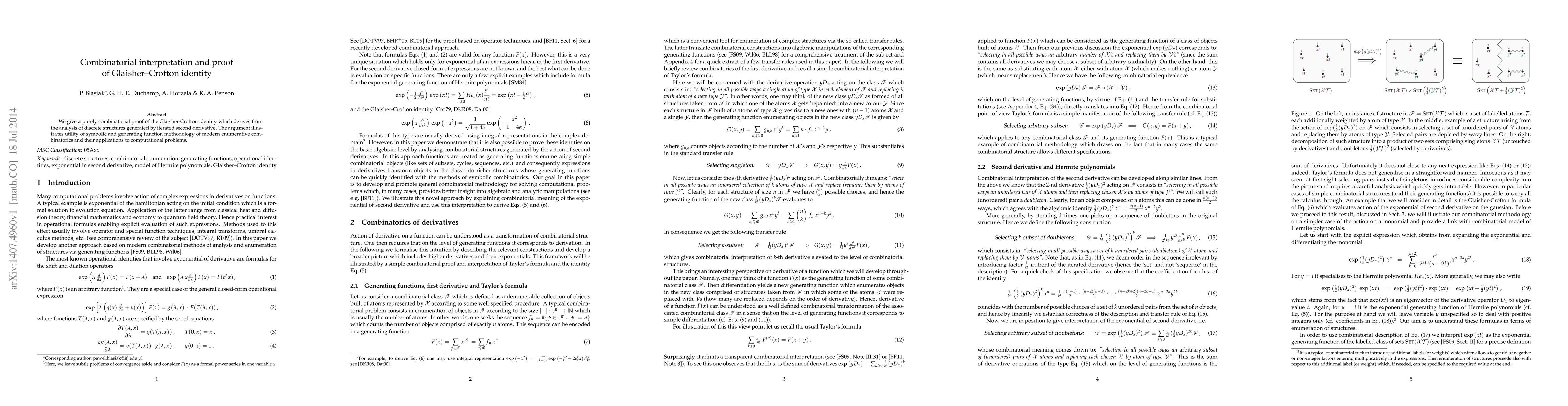 We give a purely combinatorial proof of the Glaisher-Crofton identity which derives from the analysis of discrete structures generated by iterated second derivative. The argument illustrates utility of symbolic and generating function methodology of modern enumerative combinatorics and their applications to computational problems.