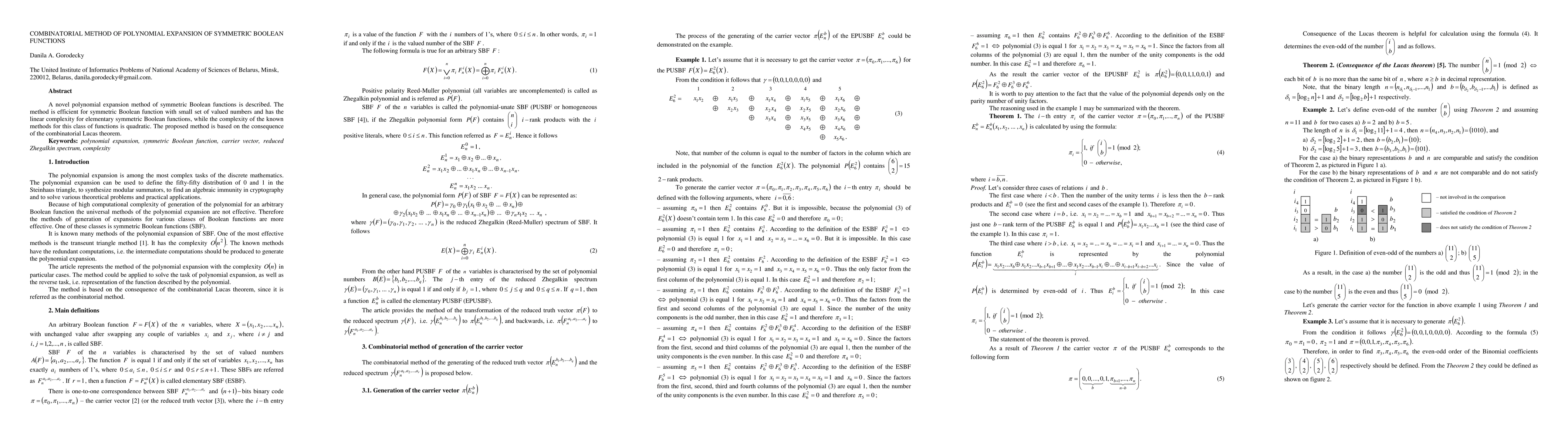 A novel polynomial expansion method of symmetric Boolean functions is described. The method is efficient for symmetric Boolean function with small set of valued numbers and has the linear complexity for elementary symmetric Boolean functions, while the complexity of the known methods for this class of functions is quadratic. The proposed method is based on the consequence of the combinatorial Lucas theorem.