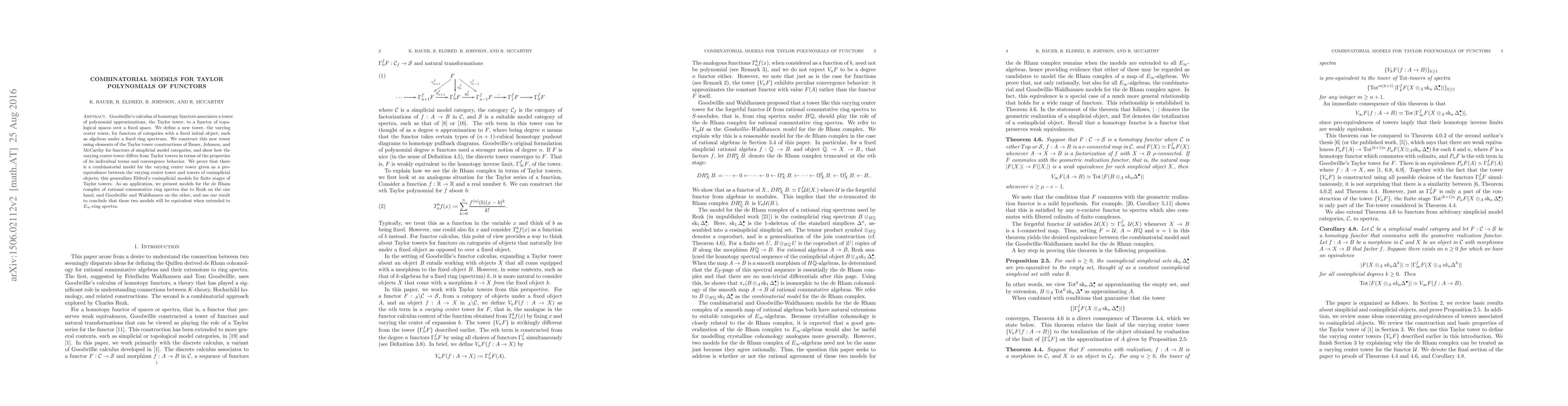 Goodwillie's calculus of homotopy functors associates a tower of polynomial approximations, the Taylor tower, to a functor of topological spaces over a fixed space. We define a new tower, the varying center tower, for functors of categories with a fixed initial object, such as algebras under a fixed ring spectrum. We construct this new tower using elements of the Taylor tower constructions of Bauer, Johnson, and McCarthy for functors of simplicial model categories, and show how the varying center tower differs from Taylor towers in terms of the properties of its individual terms and convergence behaviour. We prove that there is a combinatorial model for the varying center tower given as a pro-equivalence between the varying center tower and towers of cosimplicial objects; this generalizes Eldred's cosimplicial models for finite stages of Taylor towers. As an application, we present models for the de Rham complex of rational commutative ring spectra due to Rezk on the one hand, and Goodwillie and Waldhausen on the other, and use our result to conclude that these two models will be equivalent when extended to $E_{\infty}$-ring spectra.