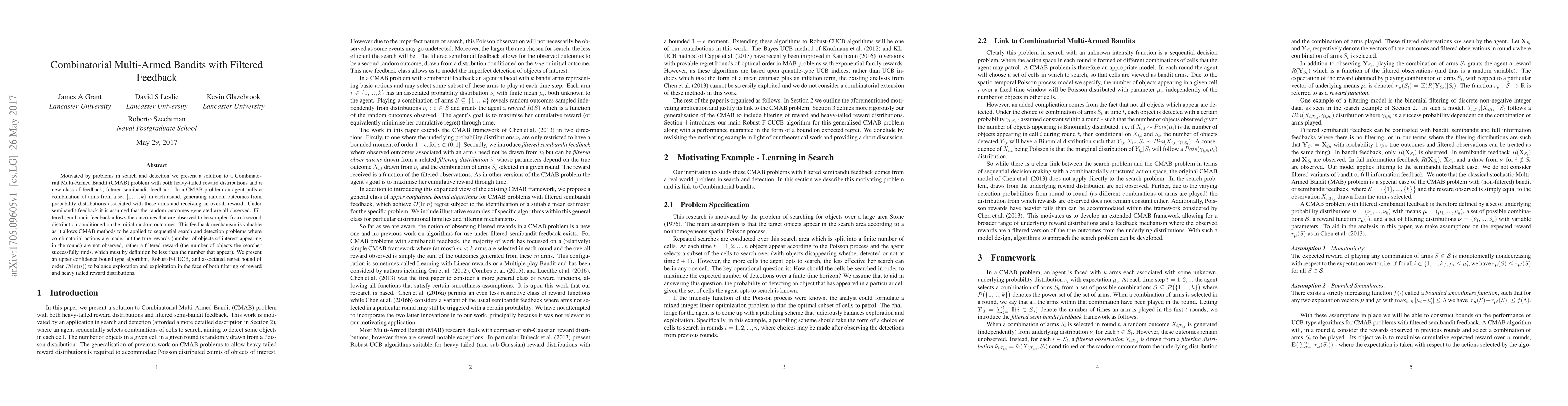 Researchers develop an algorithm to balance exploration and exploitation in combinatorial multi-armed bandits with filtered feedback, allowing for sequential search and detection problems where true rewards are not observed.
