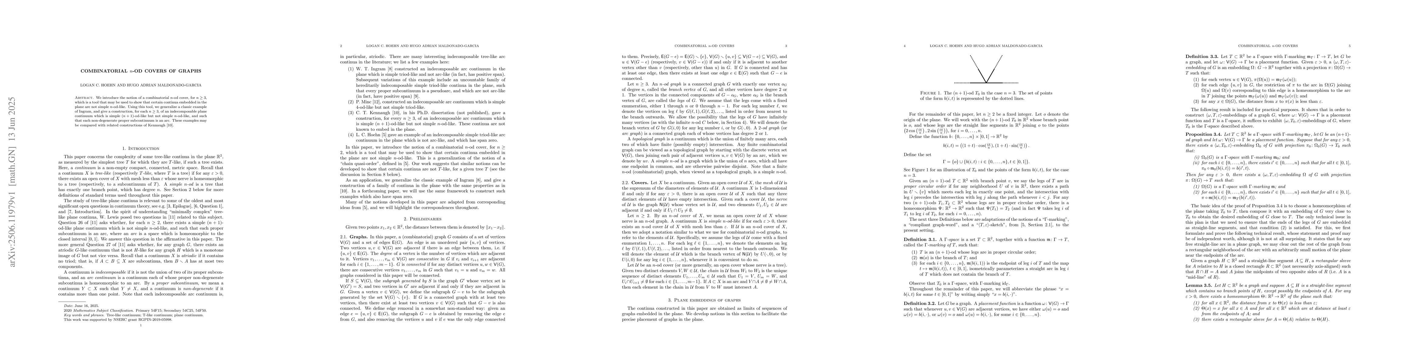 We introduce the notion of a combinatorial $n$-od cover, for $n \geq 3$, which is a tool that may be used to show that certain continua embedded in the plane are not simple $n$-od-like. Using this tool, we generalize a classic example of Ingram, and give a construction, for each $n \geq 3$, of an indecomposable plane continuum which is simple $(n+1)$-od-like but not simple $n$-od-like, and such that each non-degenerate proper subcontinuum is an arc. These examples may be compared with related constructions of Kennaugh [10].