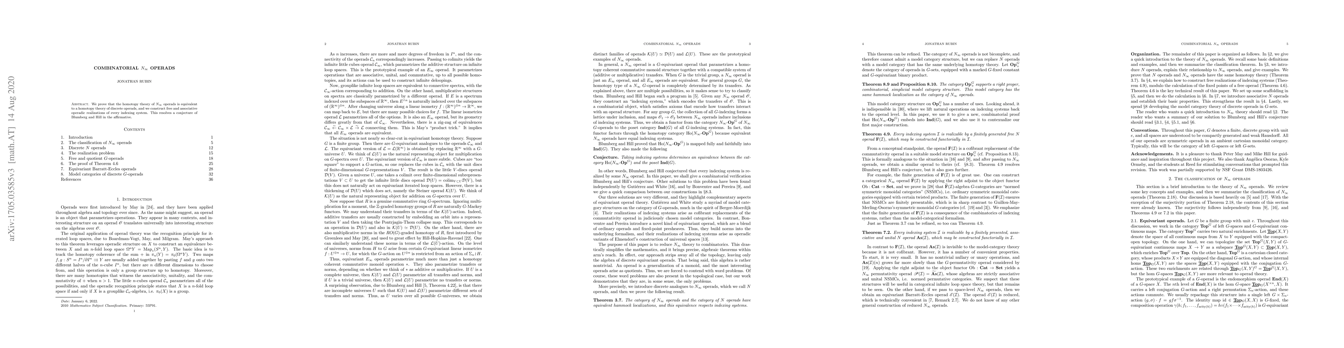 The paper proves the equivalence between the homotopy theory of $N_\infty$ operads and discrete operads, and constructs free and associative operadic realizations, thus confirming a conjecture by Blumberg and Hill.