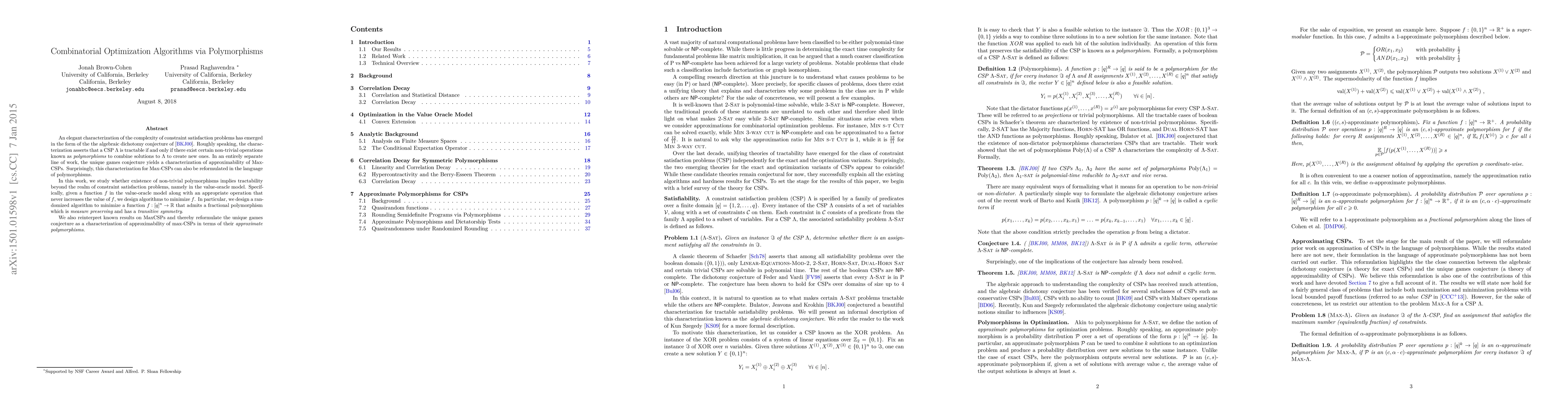This paper explores the implications of polymorphisms in combinatorial optimization, showing that non-trivial polymorphisms can imply tractability in the value-oracle model. It reformulates the unique games conjecture in terms of approximate polymorphisms, linking these concepts to the approximability of Max-CSPs.