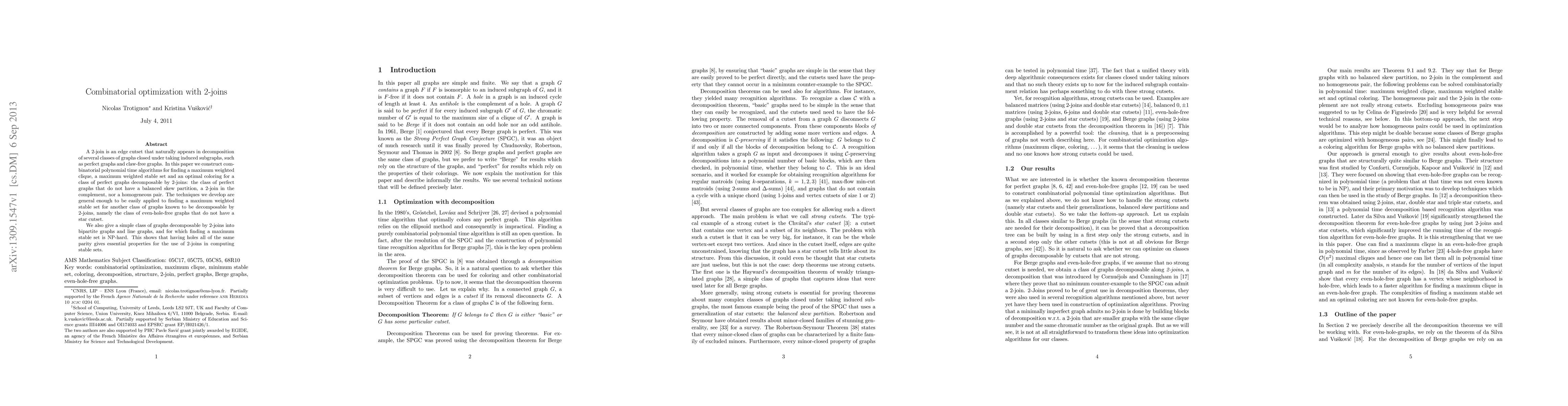 This paper develops polynomial-time algorithms for solving combinatorial optimization problems in graphs decomposable by 2-joins, focusing on perfect graphs without specific complex structures, and extends techniques to even-hole-free graphs. It also highlights the complexity of maximum stable set problems in graphs with holes of uniform parity.