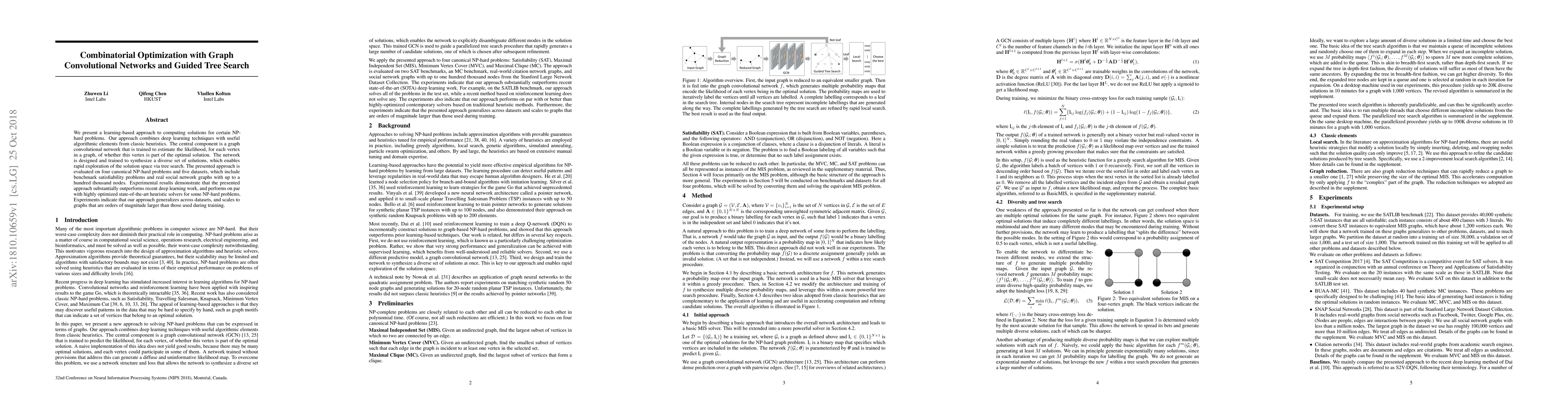 This paper proposes a hybrid method combining graph convolutional networks with guided tree search to solve NP-hard problems, achieving performance comparable to state-of-the-art heuristic solvers while scaling to large graphs. The approach synthesizes diverse solutions for efficient exploration of the solution space.
