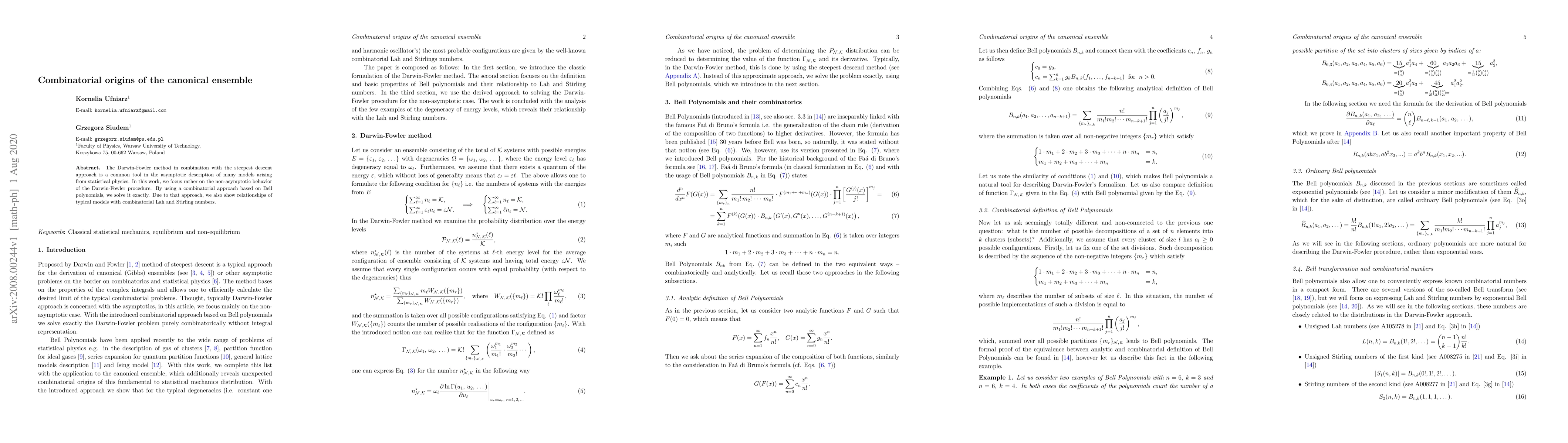 The Darwin-Fowler method in combination with the steepest descent approach is a common tool in the asymptotic description of many models arising from statistical physics. In this work, we focus rather on the non-asymptotic behavior of the Darwin-Fowler procedure. By using a combinatorial approach based on Bell polynomials, we solve it exactly. Due to that approach, we also show relationships of typical models with combinatorial Lah and Stirling numbers.