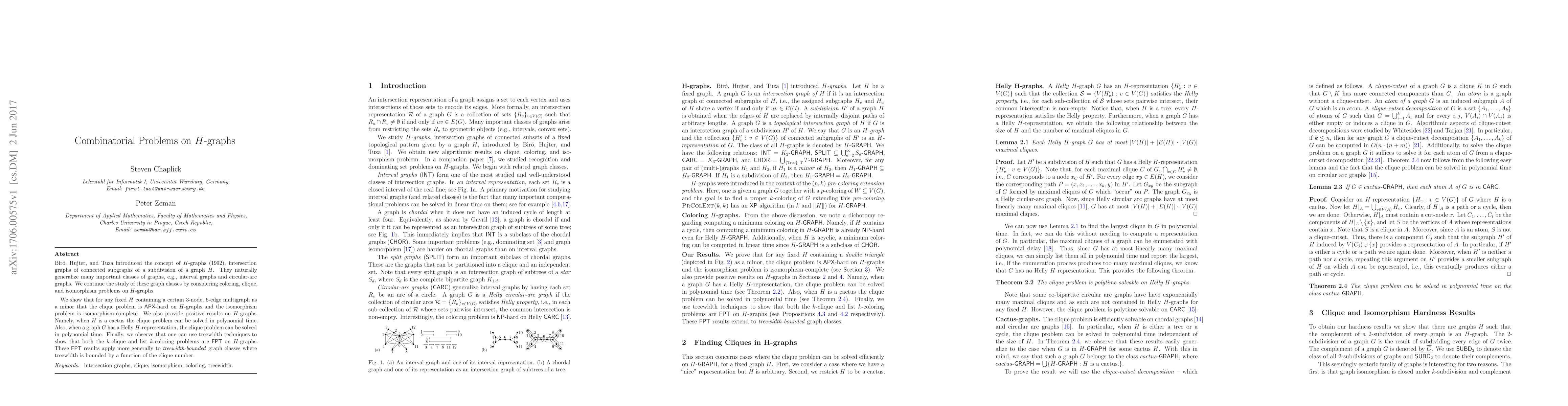 Bir\'{o}, Hujter, and Tuza introduced the concept of $H$-graphs (1992), intersection graphs of connected subgraphs of a subdivision of a graph $H$. They naturally generalize many important classes of graphs, e.g., interval graphs and circular-arc graphs. We continue the study of these graph classes by considering coloring, clique, and isomorphism problems on $H$-graphs. We show that for any fixed $H$ containing a certain 3-node, 6-edge multigraph as a minor that the clique problem is APX-hard on $H$-graphs and the isomorphism problem is isomorphism-complete. We also provide positive results on $H$-graphs. Namely, when $H$ is a cactus the clique problem can be solved in polynomial time. Also, when a graph $G$ has a Helly $H$-representation, the clique problem can be solved in polynomial time. Finally, we observe that one can use treewidth techniques to show that both the $k$-clique and list $k$-coloring problems are FPT on $H$-graphs. These FPT results apply more generally to treewidth-bounded graph classes where treewidth is bounded by a function of the clique number.