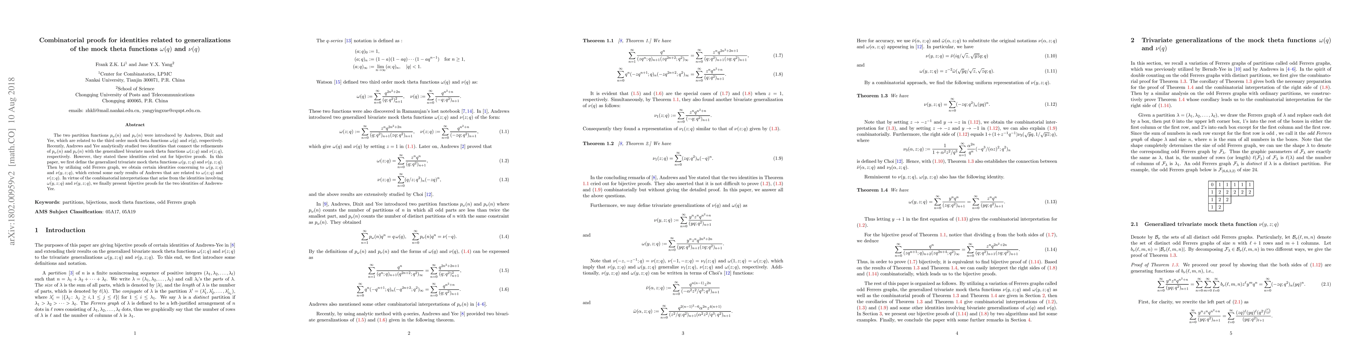 This paper introduces generalized trivariate mock theta functions and uses odd Ferrers graphs to derive new identities. It provides combinatorial proofs for the identities connecting these functions, extending previous results and addressing the need for bijective proofs identified by Andrews and Yee.