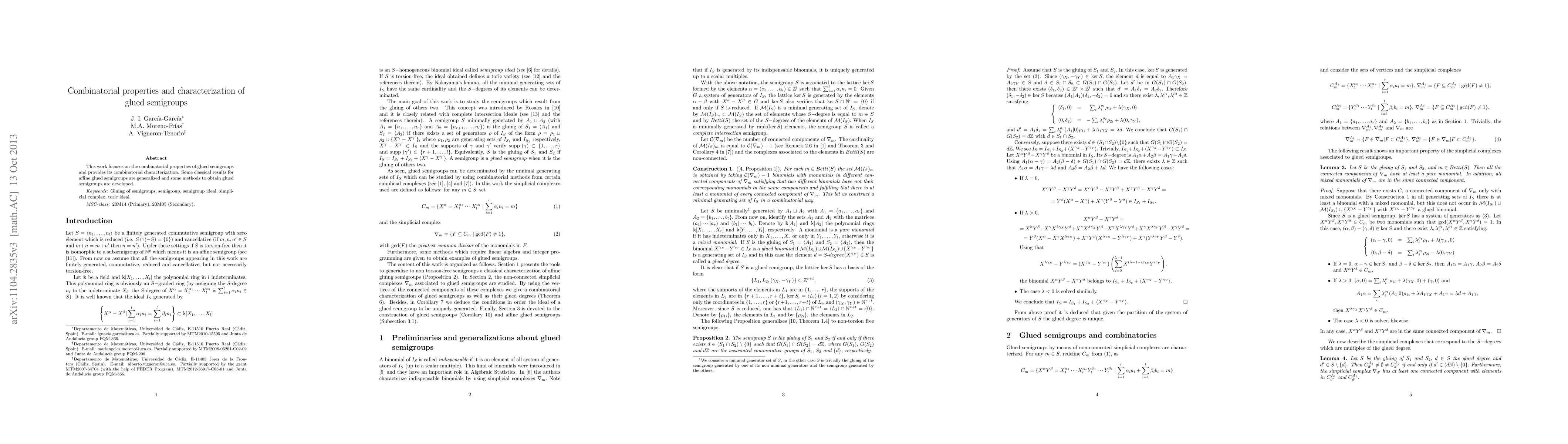 This paper explores combinatorial properties of glued semigroups, generalizing classical results and developing new methods to create them. It provides a characterization of these structures, shedding light on their underlying nature.