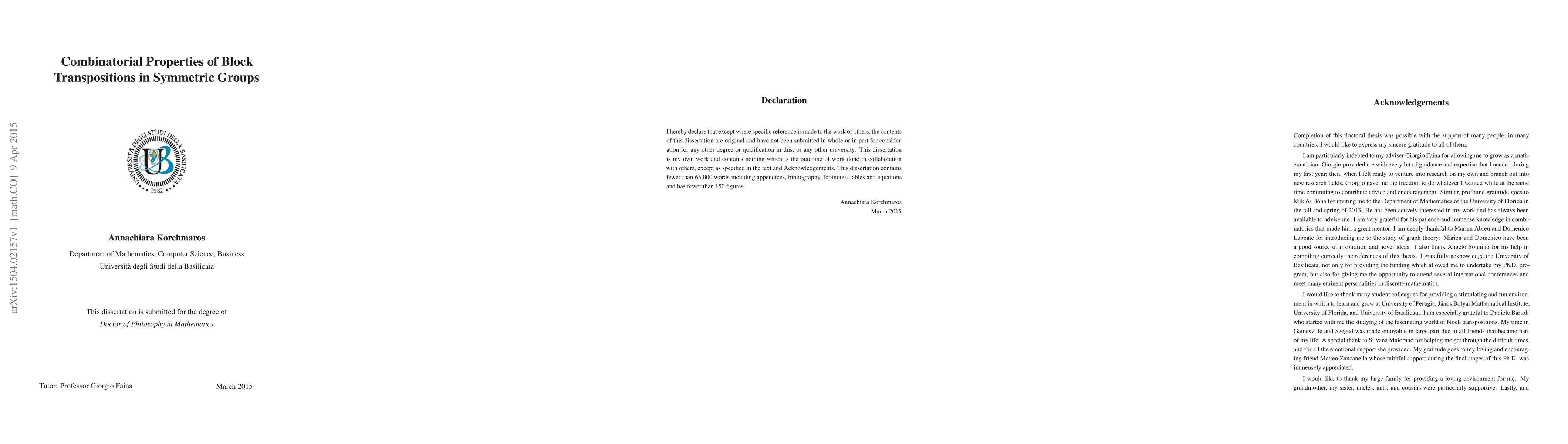 A major problem in the study of combinatorial aspects of permutation groups is to determine the distances in the symmetric group $\Sym_n$ with respect to a generator set. One well-known such a case is when the generator set $S_n$ consists of block transpositions. It should be noted that "the block transposition distance of a permutation" is the distance of the permutation from the identity permutation in the Cayley graph $\Cay$, and "sorting a permutation by block transpositions" is equivalent to finding shortest paths in $\Cay$. The original results in our thesis concern the lower and upper bounds on the block transpositions diameter of $\Sym_n$ with respect to $S_n$ and the automorphism group $\Aut(\Cay)$. A significant contribution is to show how from the toric equivalence can be obtained bijective maps on $\Sym_n$ that we call \emph{toric maps}. Using the properties of the toric maps, we discuss the role of the invariance principle of the block transposition distance within toric classes in the proof of the Eriksson bound. Furthermore, we prove that $\Aut(\Cay)$ is the product of the right translation group by $\textsf{N}\rtimes\textsf{D}_{n+1}$, where $\textsf{N}$ is the subgroup fixing $S_n$ elementwise, and $\textsf{D}_{n+1}$ is a dihedral group whose maximal cyclic subgroup is generated by the toric maps. Computer aided computation supports our conjecture that $\textsf{N}$ is trivial. Also, we prove that the subgraph $\Gamma$ with vertex-set $S_n$ is a $2(n-2)$-regular graph whose automorphism group is $\textsf{D}_{n+1}$. We show some aspects of $\Cay$, notably $\Gamma$ has as many as $n+1$ maximal cliques of size $2$, its subgraph $\Gamma(V)$ whose vertices are those in these cliques is a $3$-regular Hamiltonian graph, and $\textsf{D}_{n+1}$ acts faithfully on $V$ as a vertex regular automorphism group.