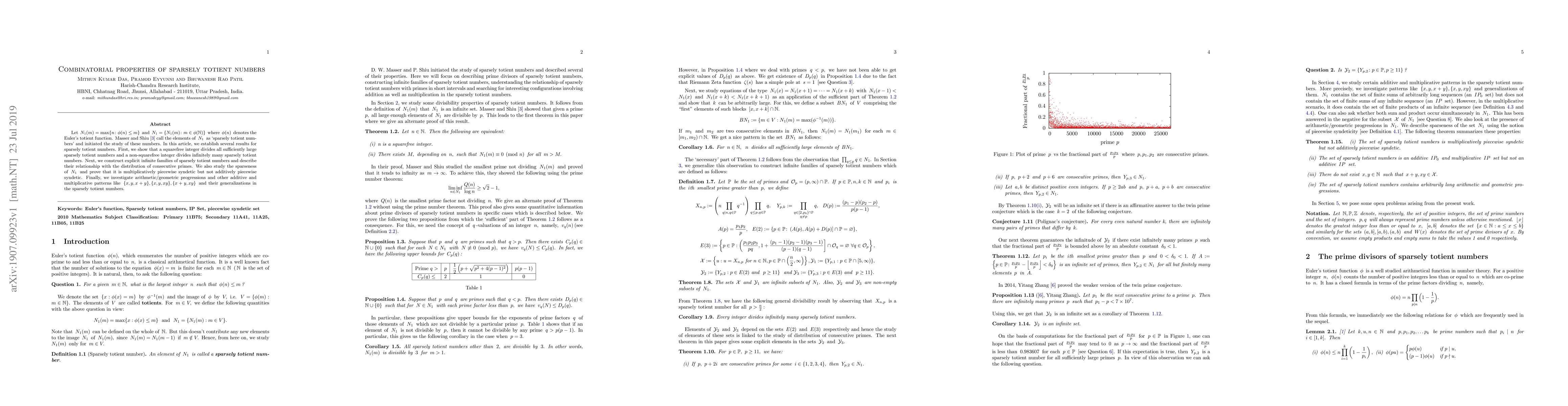 This paper explores the combinatorial properties of sparsely totient numbers, demonstrating that squarefree integers divide all sufficiently large such numbers while non-squarefree integers divide infinitely many. It constructs explicit infinite families of these numbers and examines their relationship with prime distributions, concluding that they are multiplicatively piecewise syndetic but not additively so, and investigates various arithmetic and geometric progressions within them.