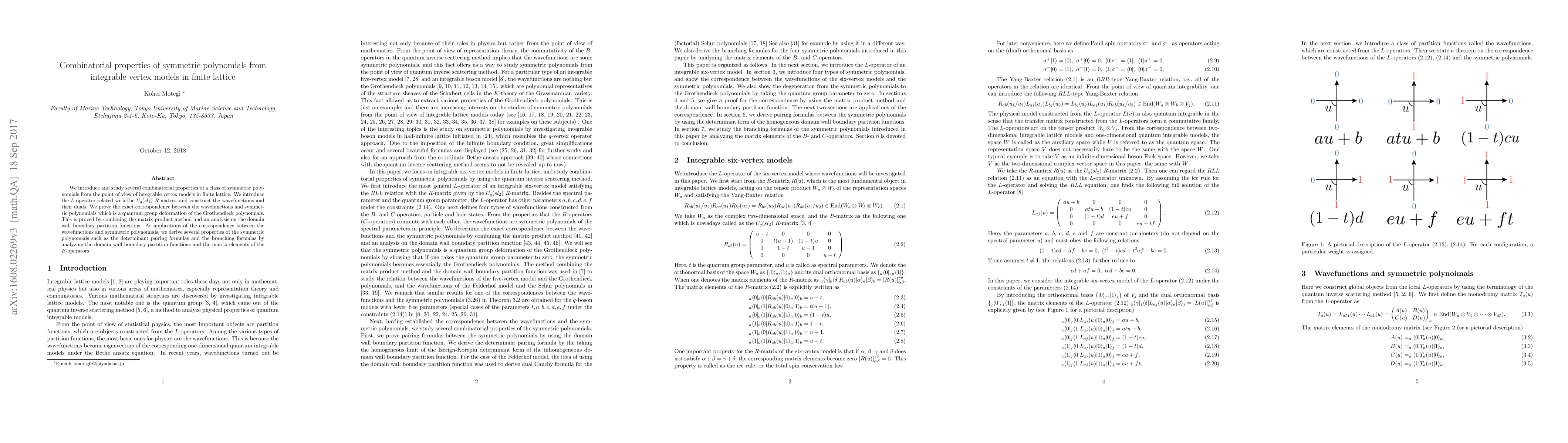 This paper explores the combinatorial properties of symmetric polynomials derived from integrable vertex models in finite lattices, establishing a connection between wavefunctions and these polynomials via the $L$-operator related to the $U_q(sl_2)$ $R$-matrix. The study reveals a quantum group deformation of Grothendieck polynomials and derives properties like determinant pairing and branching formulas through matrix product methods and partition function analysis.