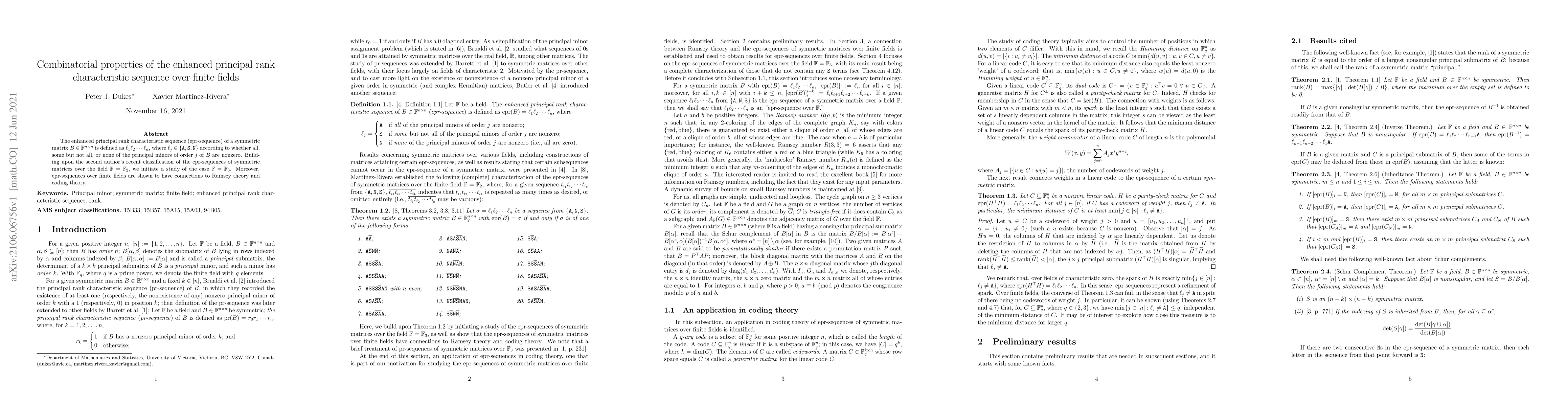 This paper explores the enhanced principal rank characteristic sequence (epr-sequence) of symmetric matrices over finite fields, specifically focusing on field $mathbb{F}_3$. It builds on previous work for $mathbb{F}_2$, and reveals connections to Ramsey theory and coding theory.