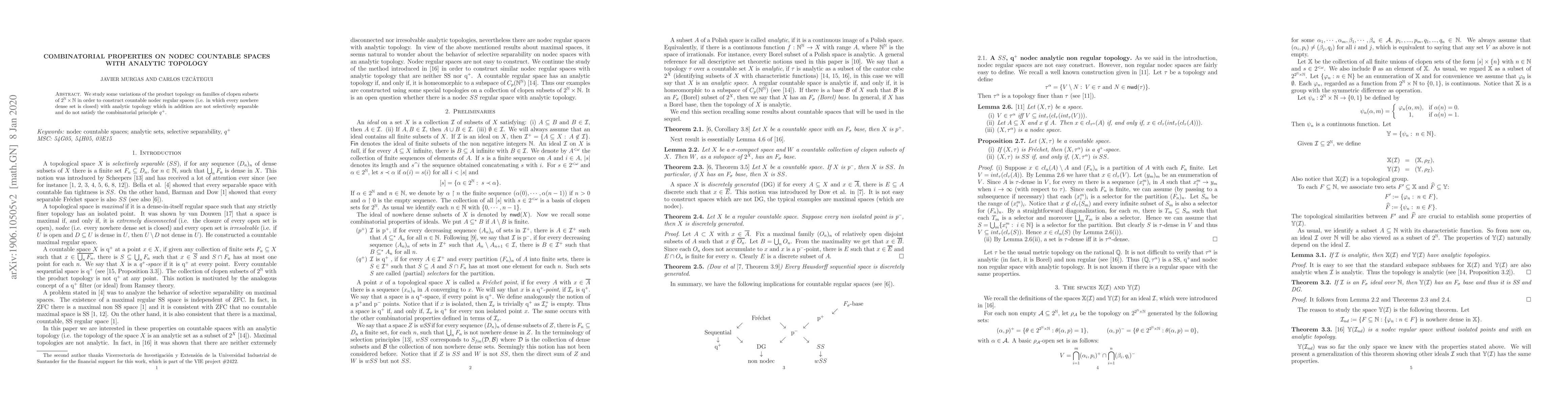 This paper explores the construction of countable, nodec regular spaces with analytic topology that violate certain combinatorial principles, providing new insights into topological properties.