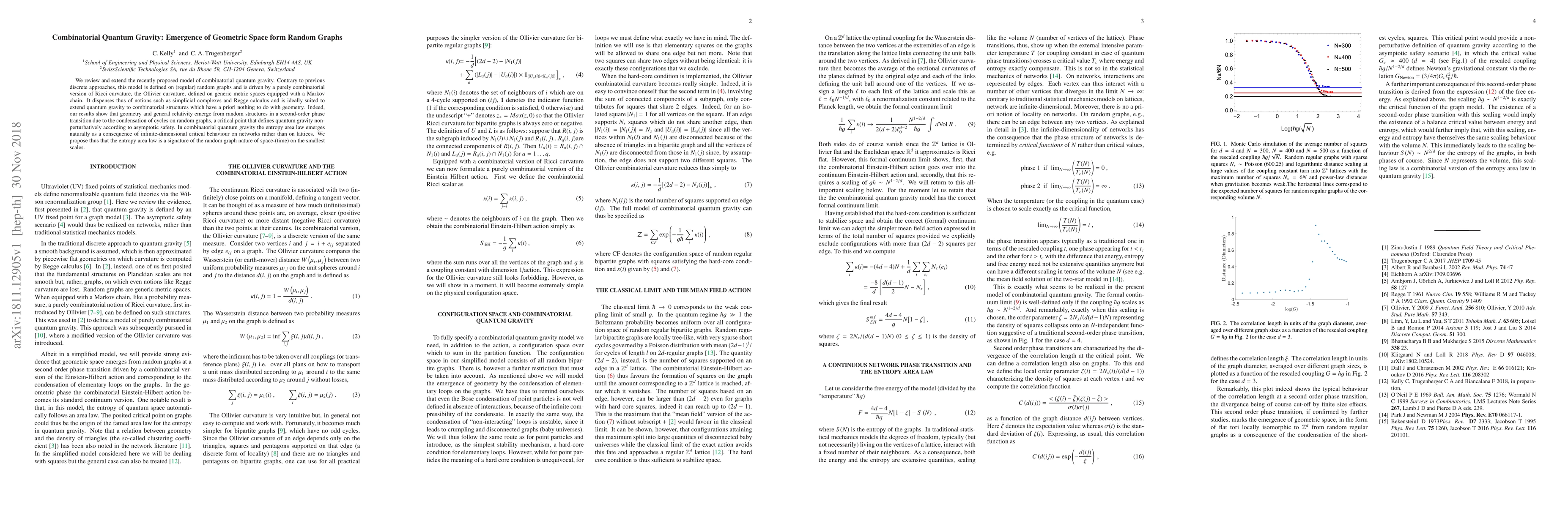 This paper proposes a novel combinatorial model of quantum gravity based on random graphs, where geometry and general relativity emerge from random structures via a second-order phase transition. The model uses Ollivier curvature and shows that the entropy area law naturally arises from critical behavior on networks.