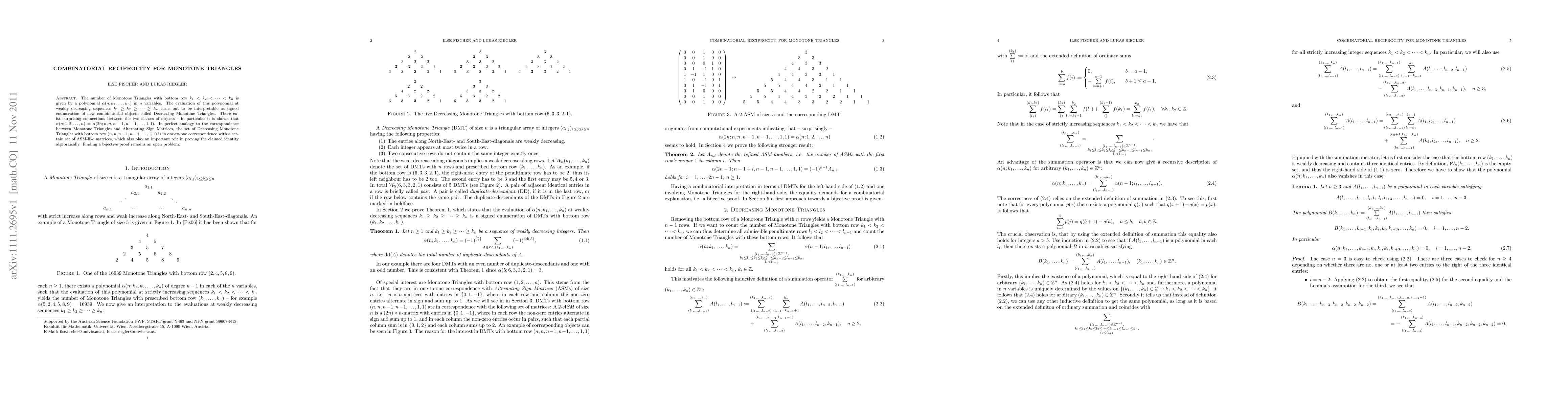 This paper explores the combinatorial reciprocity between Monotone Triangles and Decreasing Monotone Triangles, revealing a surprising identity between their polynomial evaluations and establishing a connection analogous to that between Monotone Triangles and Alternating Sign Matrices. An algebraic proof of the identity is provided, but a bijective proof remains an open challenge.