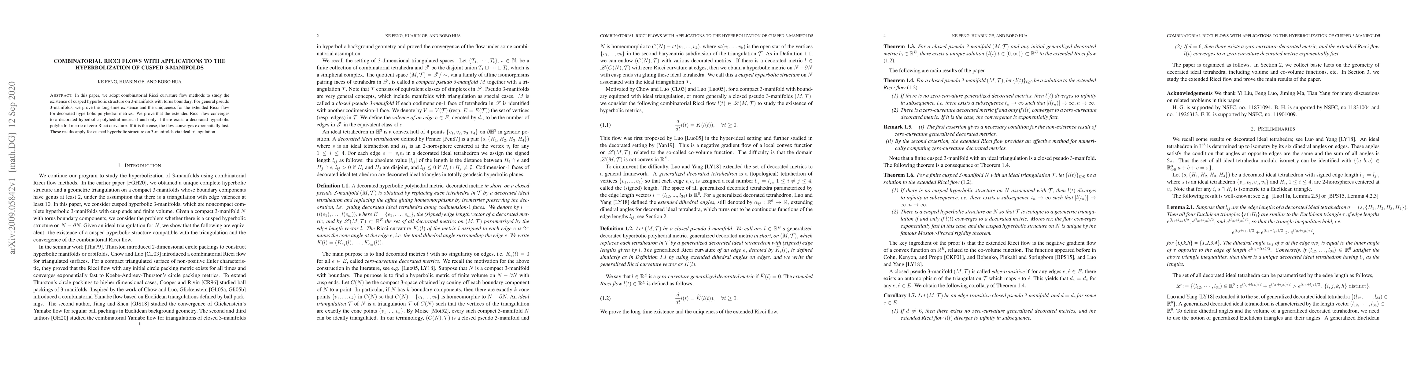 In this paper, we adopt combinatorial Ricci curvature flow methods to study the existence of cusped hyperbolic structure on 3-manifolds with torus boundary. For general pseudo 3-manifolds, we prove the long-time existence and the uniqueness for the extended Ricci flow for decorated hyperbolic polyhedral metrics. We prove that the extended Ricci flow converges to a decorated hyperbolic polyhedral metric if and only if there exists a decorated hyperbolic polyhedral metric of zero Ricci curvature. If it is the case, the flow converges exponentially fast. These results apply for cusped hyperbolic structure on 3-manifolds via ideal triangulation.