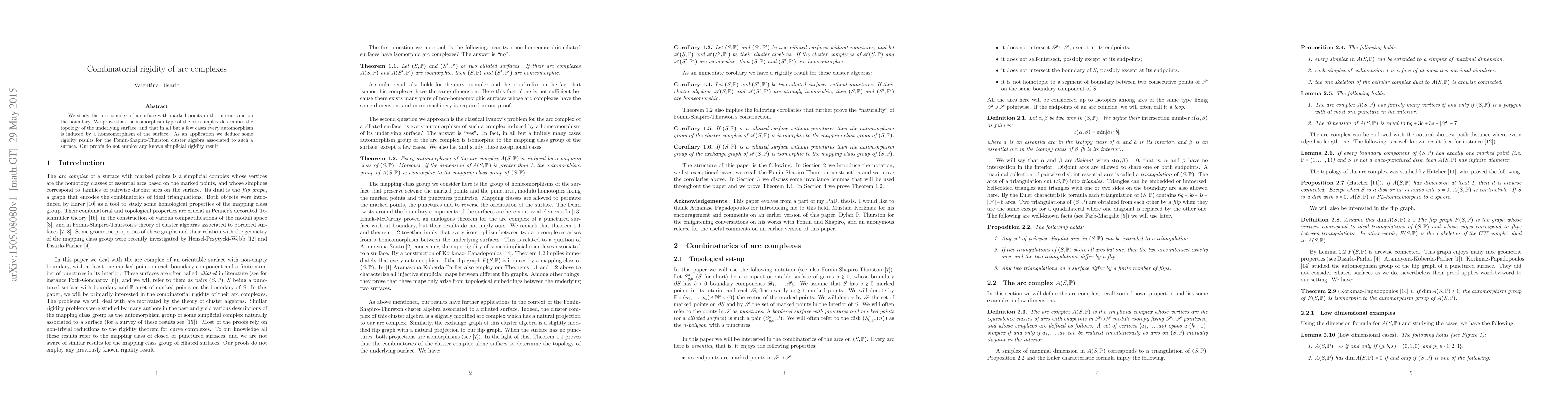 This research contributes to understanding the structure of arc complexes and their relation to surface topology, with implications for cluster algebras.