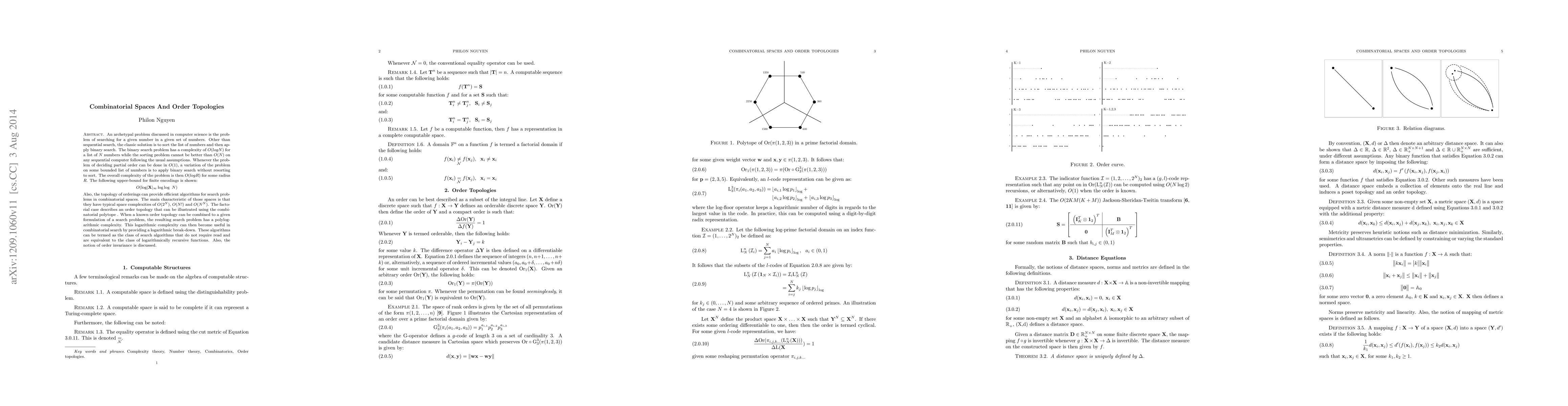 An archetypal problem discussed in computer science is the problem of searching for a given number in a given set of numbers. Other than sequential search, the classic solution is to sort the list of numbers and then apply binary search. The binary search problem has a complexity of O(logN) for a list of N numbers while the sorting problem cannot be better than O(N) on any sequential computer following the usual assumptions. Whenever the problem of deciding partial order can be done in O(1), a variation of the problem on some bounded list of numbers is to apply binary search without resorting to sort. The overall complexity of the problem is then O(log R) for some radius R. A logarithmic upper-bound for finite encodings is shown. Also, the topology of orderings can provide efficient algorithms for search problems in combinatorial spaces. The main characteristic of those spaces is that they have typical exponential space complexities. The factorial case describes an order topology that can be illustrated using the combinatorial polytope . When a known order topology can be combined to a given formulation of a search problem, the resulting search problem has a polylogarithmic complexity. This logarithmic complexity can then become useful in combinatorial search by providing a logarithmic break-down. These algorithms can be termed as the class of search algorithms that do not require read and are equivalent to the class of logarithmically recursive functions. Also, the notion of order invariance is discussed.