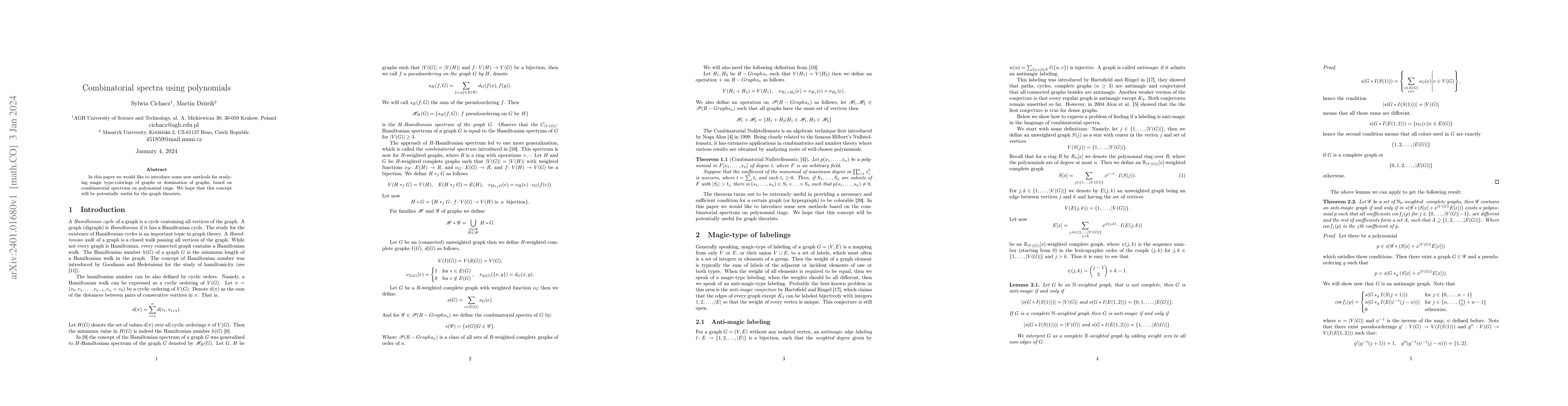 This paper introduces novel methods for studying magic type-colorings and domination in graphs using combinatorial spectra on polynomial rings, aiming to provide useful tools for graph theorists.