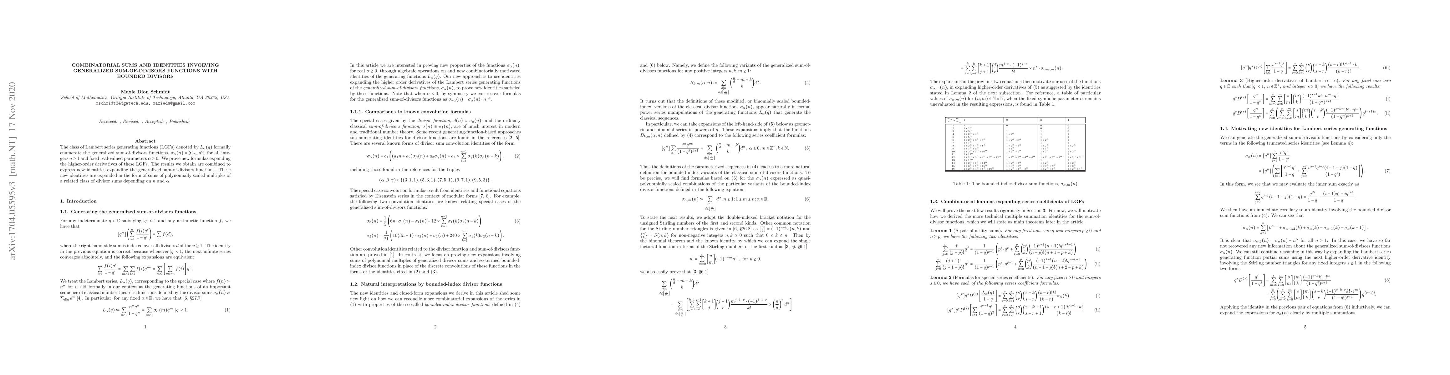 This paper develops new formulas for the higher-order derivatives of Lambert series generating functions, $L_{\alpha}(q)$, which enumerate generalized sum-of-divisors functions. It derives new identities involving these functions expressed as sums of scaled multiples of related divisor sums.