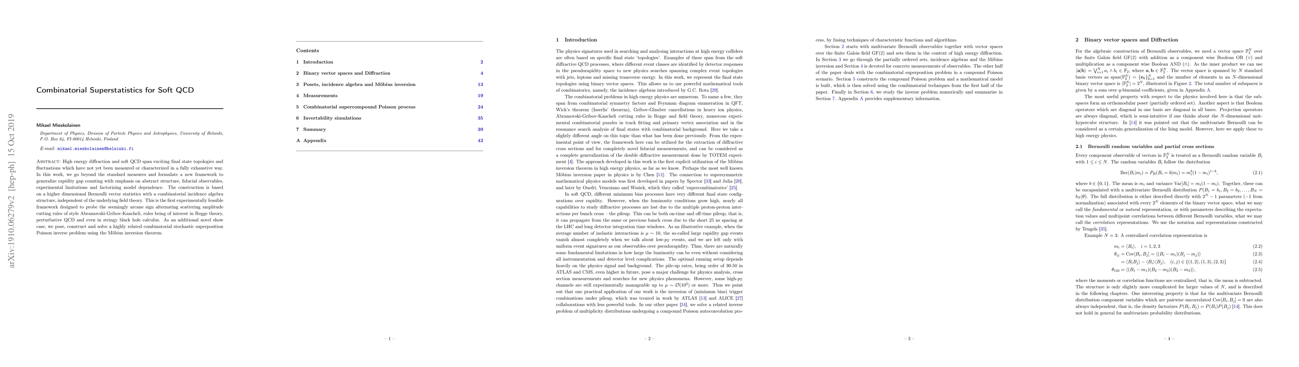 High energy diffraction and soft QCD span exciting final state topologies and fluctuations which have not yet been measured or characterized in a fully exhaustive way. In this work, we go beyond the standard measures and formulate a new framework to generalize rapidity gap counting with emphasis on abstract structure, fiducial observables, experimental limitations and factorizing model dependence. The construction is based on a higher dimensional Bernoulli vector statistics with a combinatorial incidence algebra structure, independent of the underlying field theory. This is the first experimentally feasible framework designed to probe the seemingly arcane sign alternating scattering amplitude cutting rules of style Abramovski-Gribov-Kancheli, rules being of interest in Regge theory, perturbative QCD and even in stringy black hole calculus. As an additional novel show case, we pose, construct and solve a highly related combinatorial stochastic superposition Poisson inverse problem using the M\"obius inversion theorem.